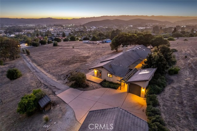 Escape to your own private 10-acre sanctuary, a property so special it is being offered for the first time. This single-level, 2,554 square foot home is perfectly situated to capture breathtaking panoramic views of San Luis Obispo's rolling hills and sun-drenched vineyards. The 3-bedroom, 3-bath home offers effortless living, complete with a dedicated office and a three-car garage. Enjoy the serenity of country life while remaining just moments away from SLO's vibrant downtown, world-class wineries, and stunning Central Coast beaches. The expansive grounds are a rare blank canvas for visionary expansion and are also entitled for up to three 1,200 square foot Accessory Dwelling Units (ADUs). Explore the potential building site above the primary home and nestled beyond the corral, with sweeping views and private access via the courtyard stairs. This is a singular opportunity to acquire a remarkable Central Coast legacy property, primed for a new generation of stewardship.
