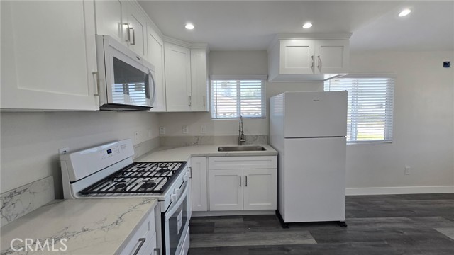 Be the first to live in this beautiful brand new ADU! Offering 2 bedrooms, 1 bath and approximately 700 sq. ft. of modern living space. Completed in 2025, this ADU features a bright open floor plan with sliding glass doors leading to a private patio, perfect for relaxing or entertaining. The stylish kitchen comes equipped with granite countertops, refrigerator, stove, microwave, and plenty of cabinet space. The bathroom also features granite finishes for a modern touch. Enjoy the convenience of your own laundry room with washer and dryer included. Additional features include recessed lighting, energy-efficient windows, and A/C and heating unit for year round comfort. One assigned parking space is located right in front of the unit for easy access. Located in a quiet residential neighborhood near schools, parks, shopping, and easy freeway access, this home offers both comfort and convenience.