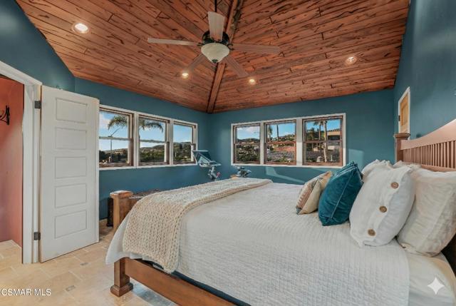 Gorgeous ocean views of the Channel Island from this home in midtown Ventura. Incredible charming bungalow home with a large addition and second story added. Kitchen features Granite counter tops with updated cabinetry. Recessed lighting throughout most of the house. There is a walk in curbless shower downstairs along with 3 bedrooms downstairs. Upstairs is gorgeously designed master bedroom (no additional rooms upstairs) with vaulted rustic wood tongue and groove ceilings, exposed beams and has tons of natural light because of all the windows. It feels like you are in a watchtower. There is a balcony off the master where you can enjoy sunsets glistening off the ocean, what a sight to see! The master bathroom features a beautiful travertine tiled shower with his and her sinks, a jetted Roman tub, recessed lighting and wraparound walk-in closet. Paid off solar! Home has a detached garage towards the back of the property and driveway (pavers) is long enough to fit an RV. Great opportunity to potentially convert garage to a detached ADU and the home is situated in a way for you to potentially convert the back half of the first story to a JADU. Very close to Loma Vista elementary school (0.2 miles), Anacapa Middle School (0.3 Miles) and Pacific View Mall (0.5 Miles). Very convenient location.