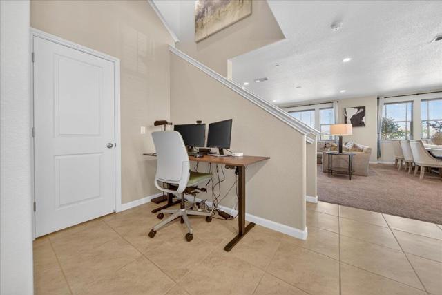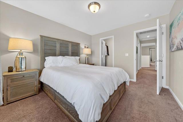 Welcome to the Jewel of Condo Living in East Garrison. This exquisite end unit offers an elevated lifestyle with picturesque views overlooking Lincoln Park, the vibrant heart of the community. Spanning 2,199 sqft, this 3 bedroom, 2.5 bathroom home showcases refined comfort and sophisticated design. The gourmet kitchen features granite countertops, a center island, spacious pantry, and premium appliances including a gas range, microwave, and dishwasher. The home flows seamlessly into a grand family room, perfect for upscale entertaining, highlighted by a stately custom built-in entertainment center. Upstairs, a versatile sitting area includes a Murphy bed for stylish guest accommodations. Thoughtfully designed throughout, the home includes custom closet systems and a well-appointed laundry room with cabinetry, counter space, and a raised platform. Meticulously maintained and shows like a model home, offering EV charging, overhead garage storage, and a water softener. The freshly painted exterior enhances its polished curb appeal. Located in one of East Garrisons most sought after Corners, with walkability to Fort Ord trail systems and nearby beaches and entertainment. The PAID OFF Facilities bond Mello Roos make this an easy win.