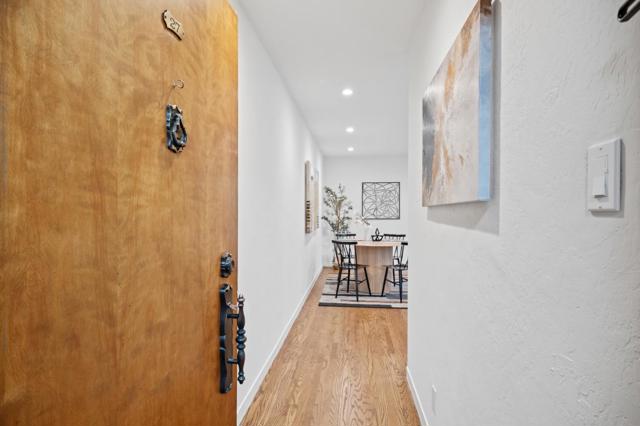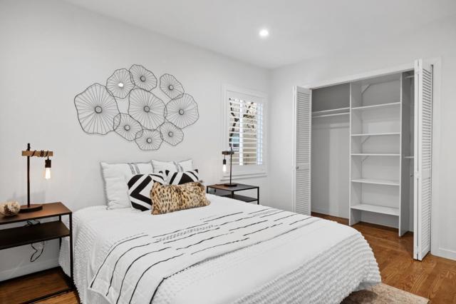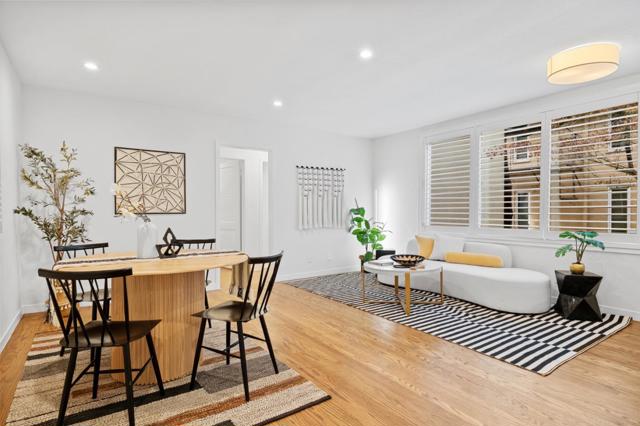 First-floor, 2bd/1ba updated condo in San Mateo Park. Features an open-plan living/dining area, hardwood floors, and white window shutters. The updated kitchen includes quartz countertops and stainless steel appliances (electric cooktop, dual ovens). Bathroom is fully refreshed with a quartz-topped vanity and a tiled shower over the tub. Updated electrical sub panel and updated closet shelving and doors in the primary bedroom. Amenities: Designated carport parking, private storage closet, common pool and barbecue area, and on-site laundry. Excellent, move-in-ready opportunity. HOA dues are $800 per month.