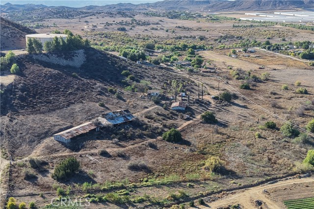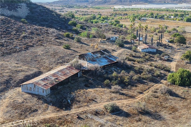 Incredible 30.33 acre property in the desirable Lake Mathews area of Perris! This fully fenced parcel offers endless possibilities for residential, ranch, or agricultural use. The land features two deep-water wells, one regular shallow well, city water, and city electricity. A two-bedroom, one-bathroom stick-built home sits on the property ready for remodeling or use as a guest home. Additional improvements include two large warehouses and a spacious barn (approx. 4,000 sq. ft.) ideal for animals or storage. The property features olive, pomegranate, palm, and eucalyptus trees, adding natural charm and privacy. Enjoy panoramic views, open space, and a peaceful rural lifestyle while still being close to major highways, shopping, and schools. A rare opportunity with excellent infrastructure and development potential!