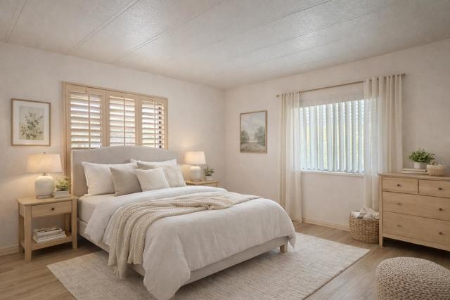 GREAT OPPORTUNITY to MAKE THIS HOME YOUR OWN in the DESIRABLE JOSHUA SPRINGS 55+ COMMUNITY! This 2 BEDROOM, 2 BATH manufactured home offers approximately 896 SQ FT and is ready for your VISION. A true FIXER, it's ideal for someone HANDY and ready to transform it into the perfect WINTER GETAWAY, SEASONAL RETREAT, OR FULL-TIME RETIREMENT HOME. With updates and personal touches, this home has STRONG POTENTIAL AND VALUE.Joshua Springs is a RESIDENT-OWNED COMMUNITY offering exceptional affordability with LOW HOA DUES that include LAND TAX, WATER, TRASH, SEWER, CABLE, AND INTERNET -- a rare ALL-INCLUSIVE PACKAGE. Residents enjoy TWO NATURAL MINERAL-WATER SPAS, A HEATED POOL, PICKLEBALL, A NEW DOG PARK, and beautifully maintained common areas, all just minutes from DOWNTOWN PALM SPRINGS. A fantastic chance to create your own DESERT ESCAPE while enjoying RESORT-STYLE AMENITIES in a welcoming 55+ neighborhood.***Photos AI Staged and enhanced***