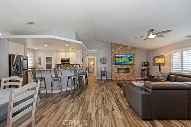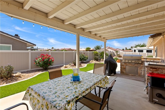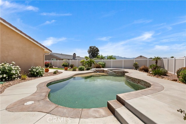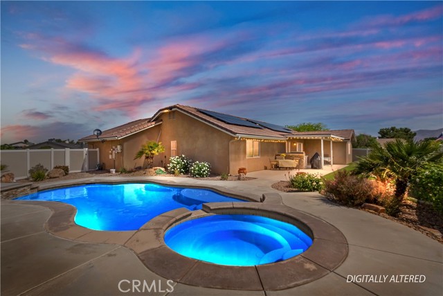 Pool home on nearly 1/2 acre of land. Newer construction home in immaculate condition, upgraded like a model home. Previous owners invested over $200,000 in upgrades, including: custom designed pool and spa, front, back, and side drought resistant landscaping and hardscaping, exterior brick work, complete outdoor, covered patio with full built-in kitchen, custom three-car garage doors, total exterior security farm-style fence and fencing between front and backyard, and RV parking with separate entrance. Additionally, the interior has a custom built in dry bar with wine refrigerator, fireplace, and has ADA compatible accessibility. ****Current loan is assumable at 2.75% for potential massive monthly savings.****