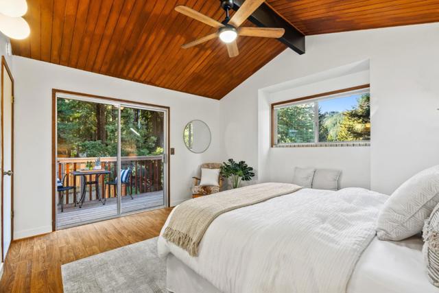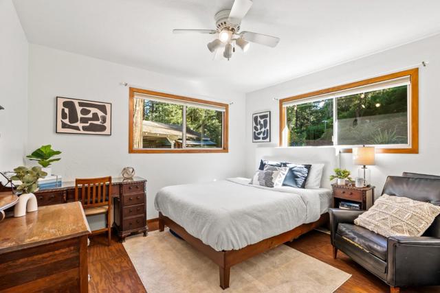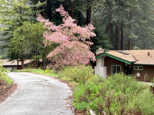Upper Forest Lakes. Amazingly peaceful and only 7 minutes to town. This 3/2 with its mid-century-modern-mountain-home vibe HAS IT ALL! Views of the Bonny Doon ridge, soaring birds, majestic trees, stars and the big dipper from the hot tub, plus so many flowering bushes. It is SO quiet here! This home lives like a single level home with all the main rooms on one level easily accessed from the driveway. Downstairs is a large vintage game room, complete with pool table and wet bar, which opens onto a large deck for entertaining. The kitchen has been updated with stainless steel appliances and a dreamy backsplash, the baths have been updated too. Other features include a new roof in 2020, a good septic system, dual paned windows, a perimeter foundation, new insulation, and plenty of extra storage below the game room and in the attic. With over 1/2 acre, there is lots of room to roam. We love the redwood circle down below the property and the garden area out front. Forest Lakes is a close-knit community, great for people of all ages, with lots of fun activities! We have a neighborhood park, summer lake and are a Firewise community to boot! There are many ways in but taking Lakeside to Early is the best route for first-time visitors, though it takes a little longer. OPEN SAT/SUN 12-3.