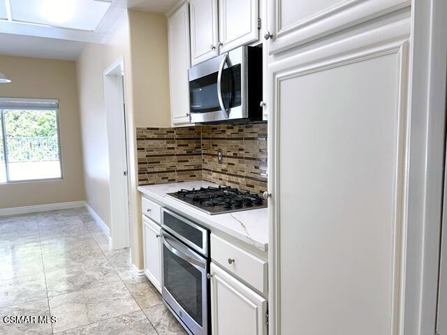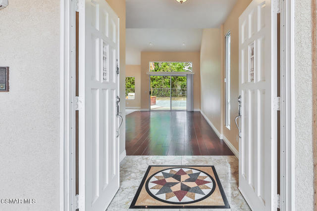 Welcome to Guard Gated Rancho Conejo! Are you looking for a 1900+ sq.ft. 2 story home with GORGEOUS hardwood and marble floors and that is extra LIGHT AND BRIGHT? This could be it! Freshly painted inside in tasteful neutral tones, this 4 bedroom, 2.5 bath is absolutely lovely...and wait until you see the QUARTZ and STAINLESS kitchen! Upon entering, you will see the living and dining rooms, a powder room and the super sunny kitchen! Upstairs are two nice-sized guest bedrooms that are close to the guest bath and a smaller 3rd guest bedroom...a perfect flex space...it could be an office, a play space or a yoga room...you choose! Also upstairs is the peaceful primary suite, complete with a walk in closet, 2 sinks, a stall shower and separate bath. The backyard is private and has a large patio area with BBQ...the perfect place to entertain family and friends! Indoor downstairs laundry. 3 car garage with LOTS OF STORAGE. Close to Blue Ribbon Schools, Shopping, Hiking and Restaurants. Come take a look!