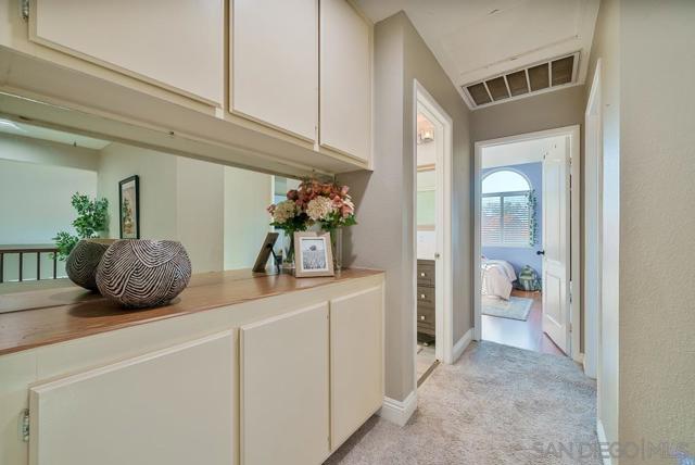 Beautifully updated 4-bedroom, 2.5 bath, 2,272 sq. ft. home with solar in the highly desirable Shadowridge community! Enter to a large great room with soaring ceilings and new dual pane windows and skylights throughout. Pass through the remodeled kitchen on your way to the spacious, versatile yard with luscious greenery and space to relax. Gorgeous quartz counters, stone backsplash, refaced cabinets, single basin sink, new dishwasher, and large island with built-in shelving in the kitchen sit next to a charming... breakfast nook with chandelier. Get cozy by the fireplace in the separate living room or head upstairs to the large Primary Suite with vaulted ceilings, a gas fireplace, soaking tub, built-in, walk-in closet and backyard views. 3 additional bedrooms, a full secondary bathroom, & linen cabinetry complete the upstairs space. The freshly painted exterior provides a clean backdrop to the covered patio, lush lawn, & new vinyl fencing in the backyard. Low HOA fees, no Mello-Roos, & resort-style pool and spa await. Ideally located near scenic hiking trails, the duck pond, Shadowridge Golf Club, Bressi Ranch shopping, and top-rated schools, this home has so much to offer!