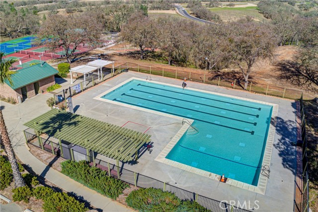 Discover the ultimate luxury lake home, perfectly designed for either multi-family shared lake home or a spacious single-family home. Situated on a 0.34-acre lot in the Lake Nacimiento gated community of Heritage Ranch, this residence combines elegance, functionality, and resort-style comfort with expansive mountain views and protected green space as its backdrop. An oversized three-car garage provides ample storage for all your lake toys, while a separate 575 sq. ft. suite (not included in the home’s listed square footage) offers a private gym, office, and half bath. This flexible space is ideal for remote work, recreation and wellness. Inside, soaring beamed ceilings, two stone fireplaces, wet bar, and two spacious living rooms set the stage for both relaxation and entertaining. The kitchen is thoughtfully designed with a center island cooktop, double ovens, stainless steel appliances, walk-in pantry, built-in buffet, and breakfast bar, making it perfect for daily living or hosting gatherings. Two primary suites each feature dual vanities, walk-in showers, walk-in closets, and sliding doors that open to outdoor living spaces. One suite also includes a private lounge or office area. A third guest bedroom with a full bath and a separate laundry room add further convenience. Outdoors, enjoy a large covered patio for dining, a covered hot tub, and open space to take in the surrounding views and wild life. Fully owned solar panels installed in 2024 along with a new roof ensure efficiency and minimal electric costs. This home is a private lake retreat thoughtfully crafted for everyday living, multi-generational convenience, and unforgettable entertaining. Life at Heritage Ranch extends far beyond your property line. As a resident, you have exclusive access to a suite of amenities designed for recreation and relaxation. Spend sun-drenched days on the lake using the private marina and boat launch ramps. Unwind at one of two community pools, challenge friends to a match on the tennis and pickleball courts, or explore miles of scenic trails. With parks, playgrounds, an equestrian center, and 24-hour gated security, Heritage Ranch provides a vibrant and secure environment for all ages.