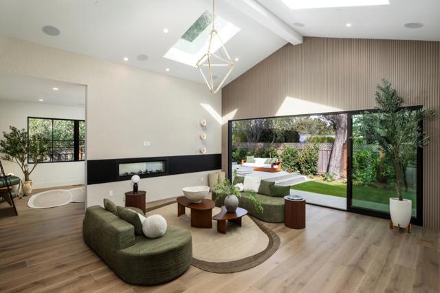 Striking new construction residence blends clean architectural lines with organic warmth and a refined, natural palette. Set back behind a long gated driveway, the home is filled with natural light and expansive walls of glass and custom lighting. Public spaces flow seamlessly, beginning with a formal living room featuring and an elevated linear fireplace. The formal dining area and sleek open concept kitchen showcases concealed Gaggenau appliances, and Amarula marble with built in casual dining area. Impressive family room features a skylit vaulted ceiling, linear fireplace, and stacking glass doors to the rear deck, plus adjacent multi-use room and dedicated office. Upstairs, the tranquil primary suite offers a sitting area and refreshment bar, customized walk-in closet, and spa-inspired bath Three additional en-suite bedrooms continue the same elevated level of finish. An attached one-bedroom ADU (included in 5,110sq ft) with private entrance provides flexible options. The rear yard features an expansive deck, privacy hedges, and low-maintenance synthetic lawn. Additional highlights include white oak floors, detached two-car garage, solar power, programmable lighting, multi-zone climate control, in a convenient location near downtown, Stanford University, and top schools.