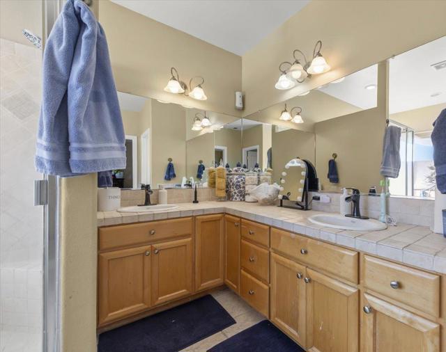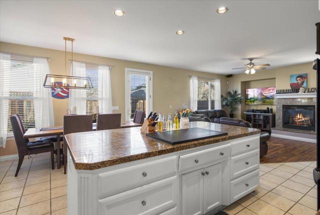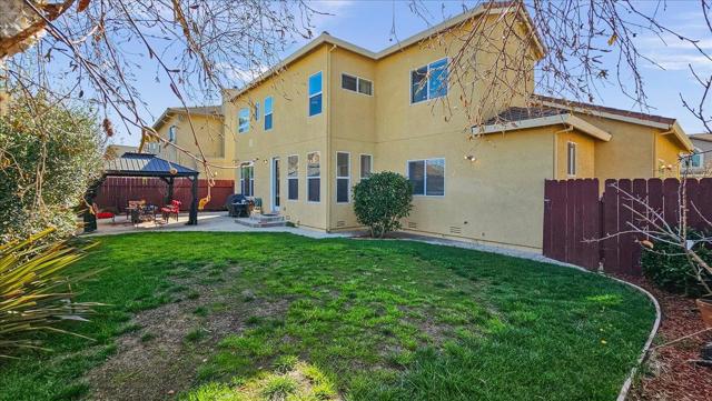 A rare gem - ground-floor bedroom with ensuite with walk-in shower perfect for in-laws, adult children or guests. The upstairs master retreat features a large tub, separate shower, large walk-in closet. Chef's Kitchen - great for the cook in the family and especially for entertaining guest. Stunning granite countertops, an extra-large island ideal for prep and casual dining, large pantry, open lay out with plenty of cabinet and storage. The formal dining area includes a wet bar, while the family room offers a cozy gas starter fireplace and ceiling fan. Custom window coverings adds privacy with a sophisticated style throughout. Smart & Practical Amenities Dedicated laundry room with sink, laundry chute - yes!...a laundry chute for effortless laundry day, multi-zone A/C, whole-house fan, alarm system. The finished garage boasts high ceilings for added storage or workshop potential. Outdoor Paradise & Extra Parking Fully landscaped front and backyard with automatic sprinklers for easy maintenance, plus a patio and gazebo creating the perfect shaded spot for BBQs, relaxation, or play. Spacious side-yard to accommodate recreation-vehicle(s) or additional work/ storage area.