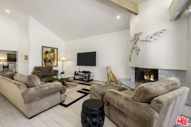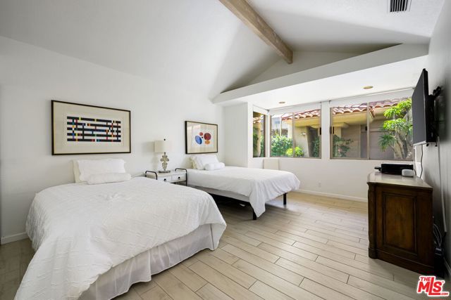 Stunning single-level remodeled home with gorgeous golf course views located in the highly desirable and guard gated Rancho Mirage Country Club. This turnkey residence has been beautifully designed to showcase a bright open floor plan with high ceilings throughout, abundant natural light and incredible indoor/outdoor living spaces. The main living area opens to the spectacular backyard featuring scenic golf course and mountain views, a beautiful pebble-tech pool, spa, built-in BBQ, dining area and multiple lounging spaces. The home features 3 bedrooms, 3 baths, large dining area with sliding glass doors, living room with centerpiece fireplace, large formal entry, high vaulted ceilings, beautiful exposed wood beams and automated blinds. The gourmet kitchen has been remodeled to showcase an oversized island with built-in seating, stainless steel appliances and incredible amounts of storage and counter space. The primary suite features a private enclosed patio, cedar lined walk-in closet and a spa-like bath with dual vanities, skylights and separate soaking tub. Attached two-car garage with additional storage, golf cart parking and fully-owned solar panels. HOA dues cover 24-hour security guard gate, cable TV, internet, roof, exterior paint and stucco, front yard landscaping, 4 community pools/spas and golf course. A truly move-in ready hideaway.