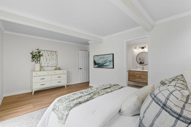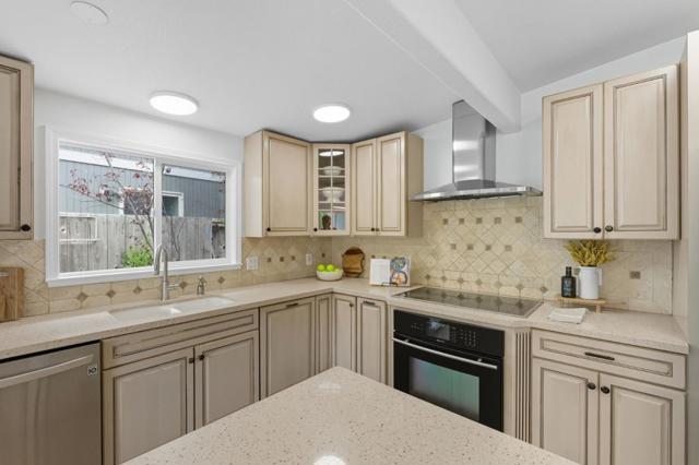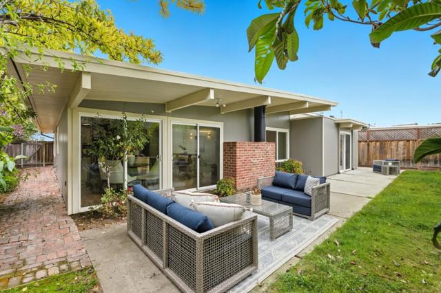 Find yourself in a newly updated and previously expanded 4 bedroom Eichler gleaming with natural light, an enclosed atrium, heightened sloped ceiling and wraparound roof line windows. Single floor living partnered with a relatively open layout, provide 3 distinct and welcoming gathering spaces - an opened up formal living room, dining/multipurpose room and family room. The sized up kitchen includes stainless steel appliances, plentiful storage and a large island with built-in seating, as well as an eat-in dining area that opens up to the backyard for desirable indoor/outdoor living. Choice flooring, select light fixtures and radiant heating complement the home, simplifying future interior design/art options. A spacious primary, inclusive of en-suite and private backyard access along with 3 well sized bedrooms, full bath, sizable quad panel storage and laundry. Backyard has room to play, garden, entertain and 2 car garage has added storage, separate access to backyard and Tesla EV charger. Roof is 3.5 years old. No neighbors across and Bay views provides privacy, as well as immediate access to nearby Bridgeview Park and Bay Trail. Foster City has acclaimed schools, plentiful community resources, beaches, parks, greenways, lagoons and unending shopping and amenities.