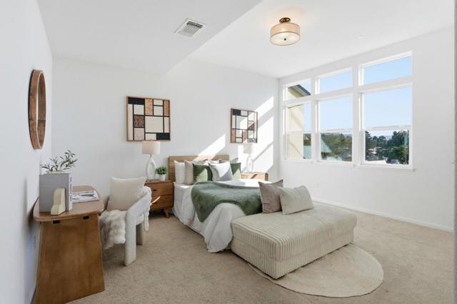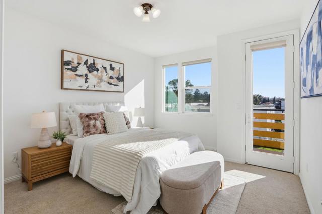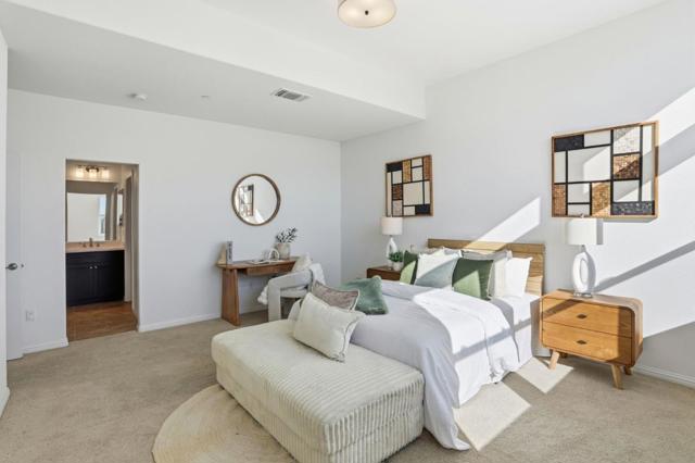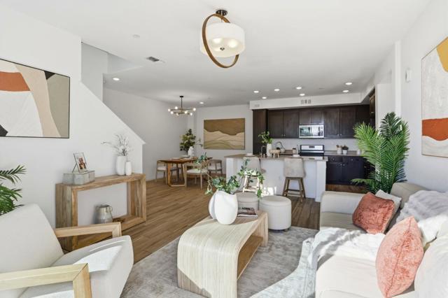 Immaculate and impeccably maintained, this townhome boasts an open views. It features abundant large picture windows that offer and opulent soothing natural light. The open floor plan is decorated in contemporary neutral colors and quality wood looking tile floors throughout. The spacious and functional kitchen is equipped with ample dark Shaker cabinets, SS appliances, expansive quartz counters and large central island with convenient breakfast bar. Step out onto the intimate deck from both the living room, seamlessly blending indoor and outdoor living. The generous master suite includes airy elevated ceilings, a lavish ensuite bath with a large shower, dual sink vanity, and a spacious walk-in closet with elaborate organizers. The secluded main floor guest/in-law bedroom is adjacent to a full bath, providing privacy and convenience. Additional features including built-in kitchen water filter and central water softener. Special amenities in this community include BBQ/picnic area and dog friendly park. Enjoy outdoor activities in the nearby Newbury Park. Convenient location: Short commute to downtown San Jose, Japantown, and shopping centers like Costco, Ranch 99, and H-Mart. Easy access to BART, VTA, freeways 101/680, and within walking distance to Google and Meta shuttle stops.