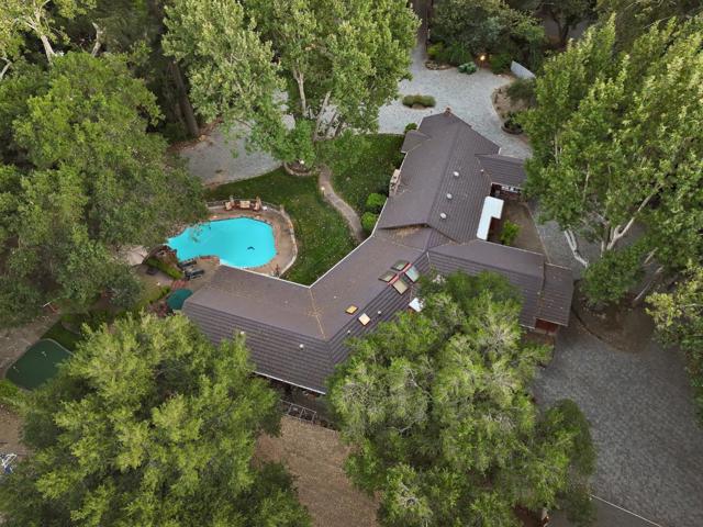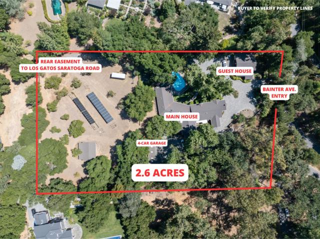 Welcome to 19405 Bainter Avenue a rare Saratoga retreat blending timeless charm, privacy, & opportunity. Set on over 2.6 acres of nearly flat, usable land, this estate offers unmatched potential, including lot split opportunities (buyer to verify). Easy driveway access or rear easement access. Tucked behind mature trees, the setting feels secluded while still being minutes from the heart of Saratoga & within award-winning Saratoga schools.The single-level main residence spans 3,700+ sq ft w/ 5 beds & 5 baths. Inside, enjoy vaulted ceilings, a spacious kitchen layout, and distinct bedroom wings with generously sized rooms. The homes rec room w/ bar and wine cellar provides the perfect place to relax & host. The grounds are equally captivating with a sparkling pool & spa, mature landscaping, and space to expand. A separate guest house w/ 2 beds & 2 baths offers flexibility for extended guest visits. Car enthusiasts will appreciate the 4-car garage + storage. Modern upgrades include solar panels with battery backup, offering efficiency and peace of mind. This is a once-in-a-generation property whether you're drawn to its vintage character, expansive grounds, or future development potential, 19405 Bainter Avenue is a rare find in Saratoga's premier location w/ top-rated schools.