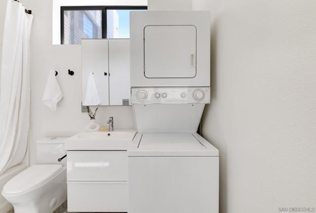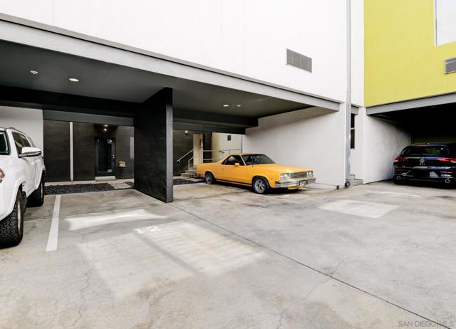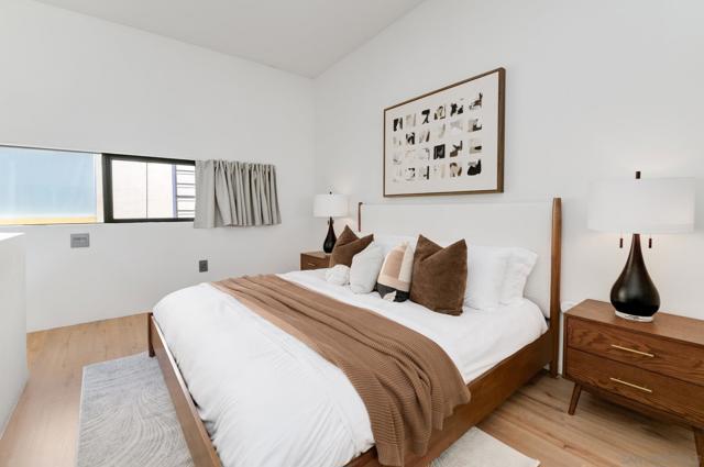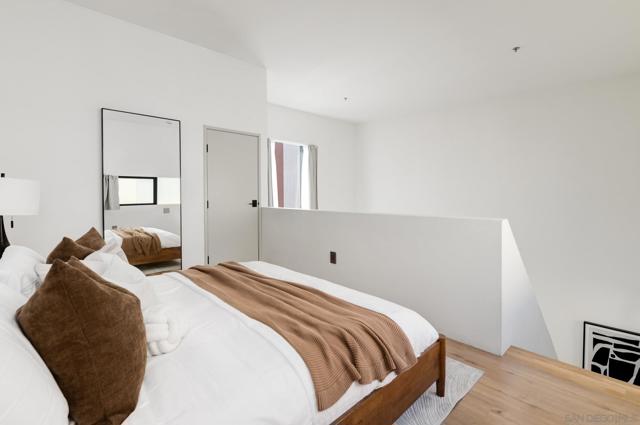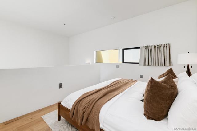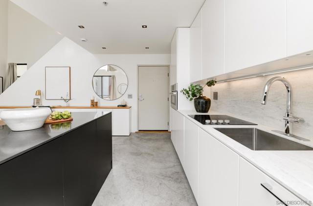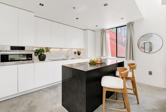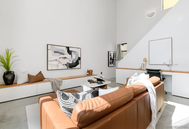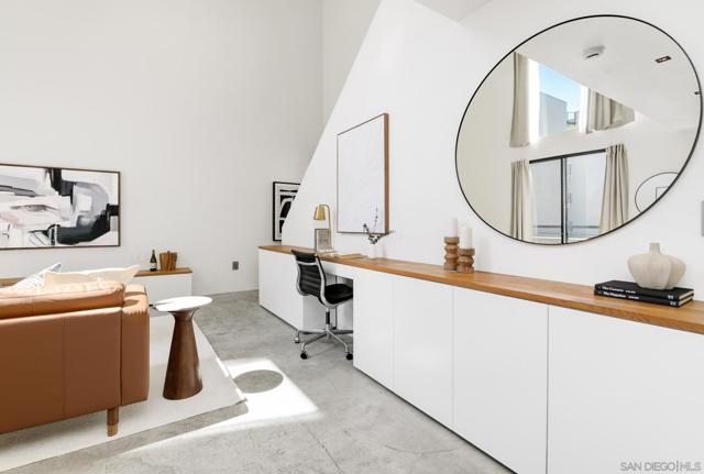 Experience modern urban living in this exceptional loft crafted by renowned architect Jonathan Segal, located in Little Italy. This south-facing, light-filled residence features soaring ceilings and a thoughtfully updated open-concept design. The sleek kitchen is outfitted with Bosch appliances, custom cabinetry with Blum hardware, integrated lighting, and a waterfall island, perfect for both function and style. Additional features include polished concrete floors, a custom-built in desk with oak counters, recessed LED lighting, oak staircase, and Legrand Adorne outlets throughout. The living area is enhanced with built-in storage and tailored finishes that elevate everyday comfort. A freshly updated bathroom with a new vanity, porcelain tile, Moen fixtures, and an in-unit washer/dryer. With LOW HOA dues and a designated parking space, this stylish loft offers an incredible opportunity for a primary residence or high-performing investment. Just steps from Little Italy’s best restaurants, cafes, shops, waterfront park, and the beloved Farmers Market. Don’t miss this rare chance to own a modern, architectural gem in one of San Diego's most sought-after neighborhoods.