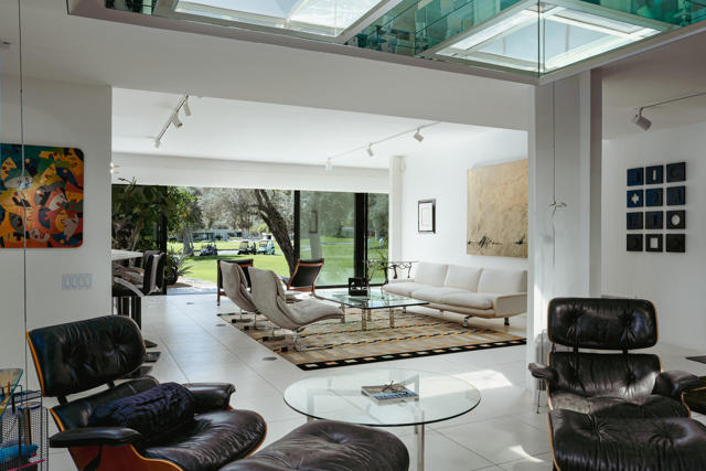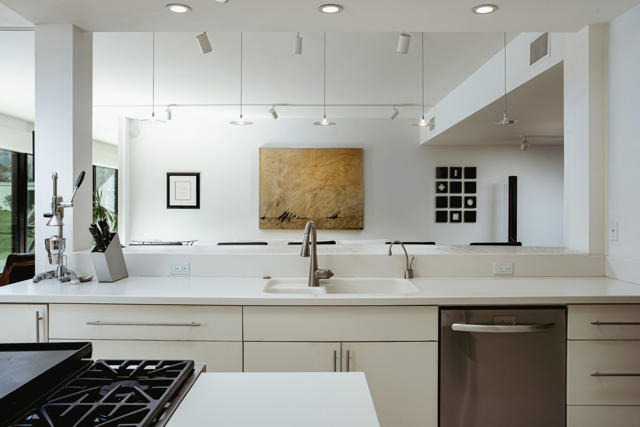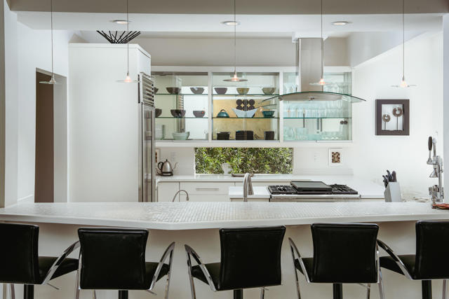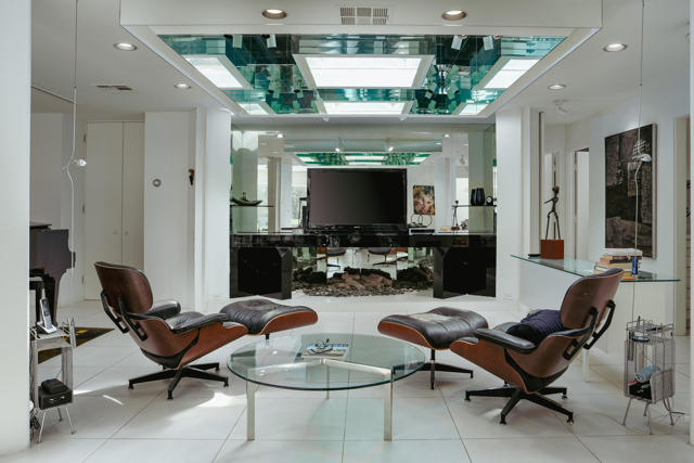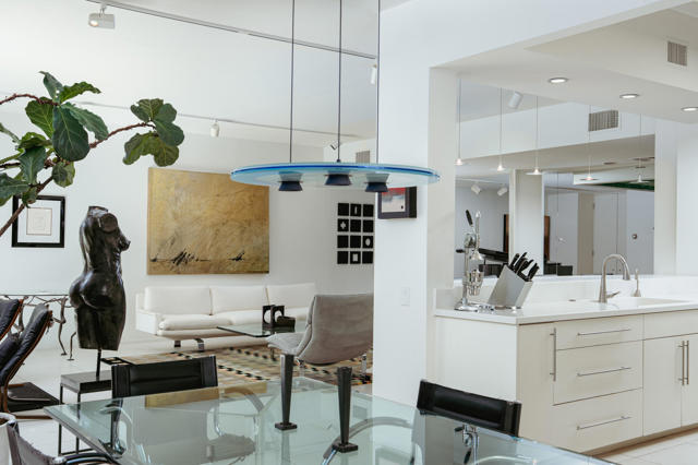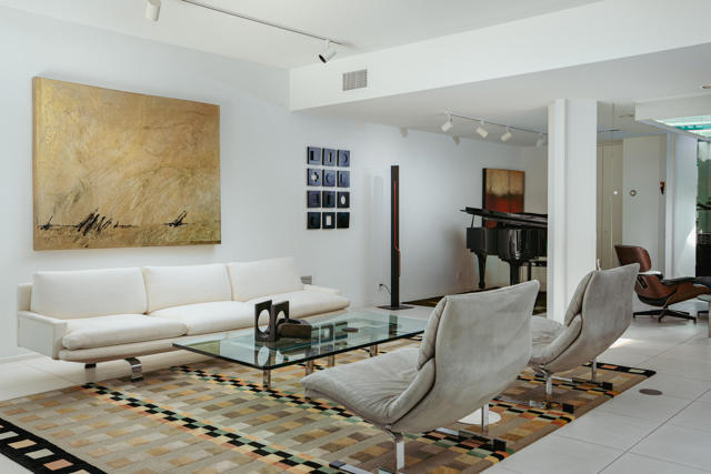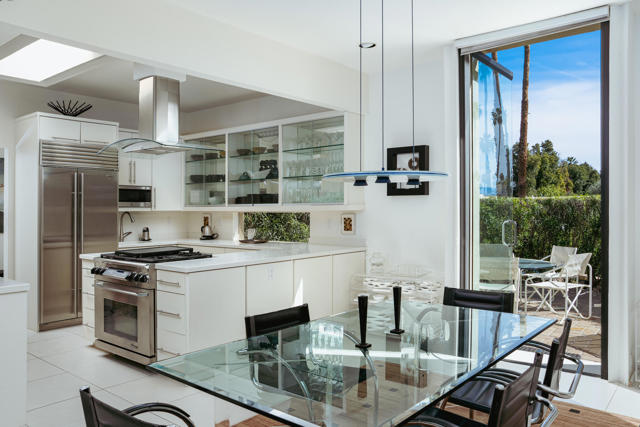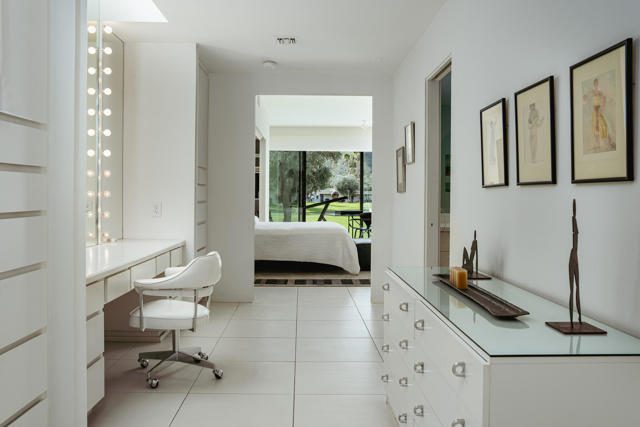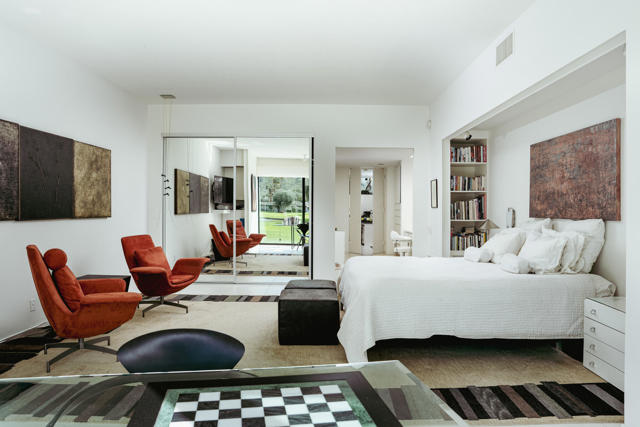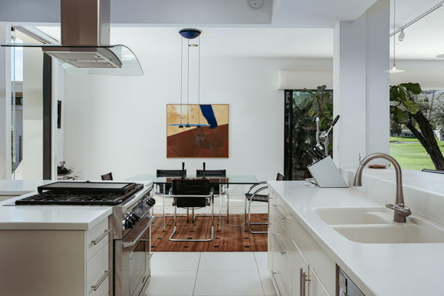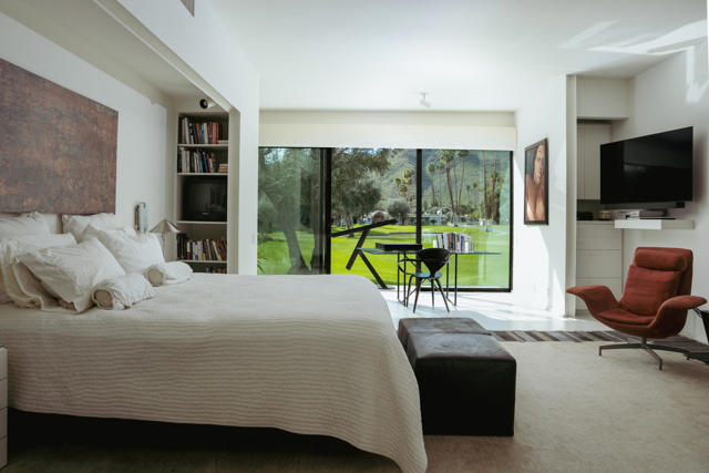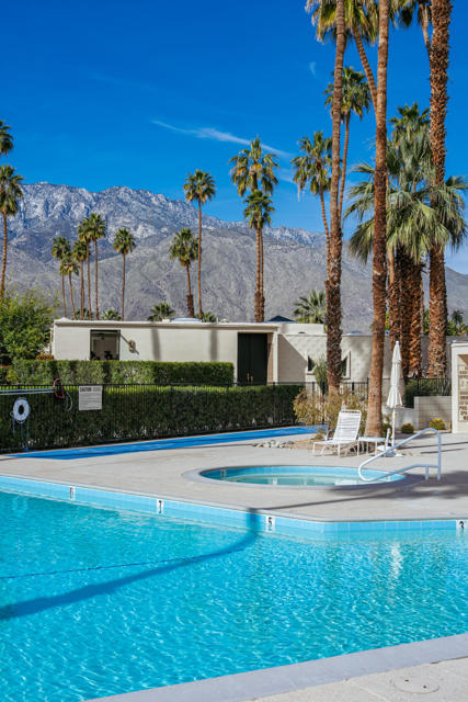 Presenting a distinguished Mid-Century Modern residence within the guard-gated enclave of Seven Lakes Golf & Country Club in Palm Springs. Originally designed by noted architect Richard Harrison, then expanded and thoughtfully enhanced by Architect, A William Hajjar to approximately 2,775 square feet, offering a refined interpretation of classic desert modernism. Positioned along the 16th green of the Ted Robinson-designed executive golf course, the residence captures sweeping southwestern views across the fairway, tranquil lake, and the dramatic mountain range beyond. Walls of glass invite abundant natural light, creating luminous interiors and providing generous gallery-style wall space ideally suited for a curated art collection. The floor plan features two well-proportioned bedrooms, two baths, and a versatile bonus workspace adaptable as a private office, studio, or creative retreat. A fireplace anchors the den area, lending warmth and architectural balance. The dining and well appointed kitchen areas open seamlessly to a private, hedge lined patio offering an intimate setting for outdoor dining and entertaining, embodying the essence of Palm Springs indoor/outdoor living. Seven Lakes offers an exceptional lifestyle with 15 pools and spas thoughtfully distributed throughout the community, as well as tennis and pickleball courts for active recreation. The iconic clubhouse, designed by renowned architect William Cody, serves as the social centerpiece, featuring an elegant dining room, vibrant lounge, and expansive outdoor terrace. This is a rare opportunity to acquire an architecturally significant home in one of Palm Springs' most celebrated Mid-Century Modern communities--where design pedigree, resort-caliber amenities, and panoramic desert vistas converge.