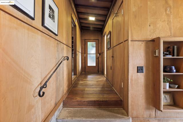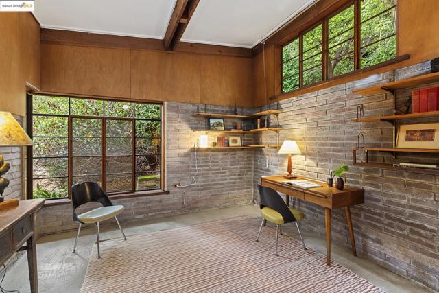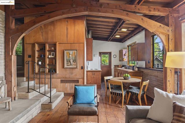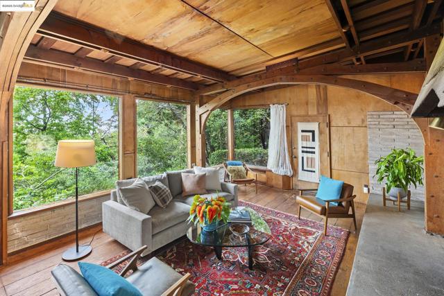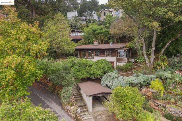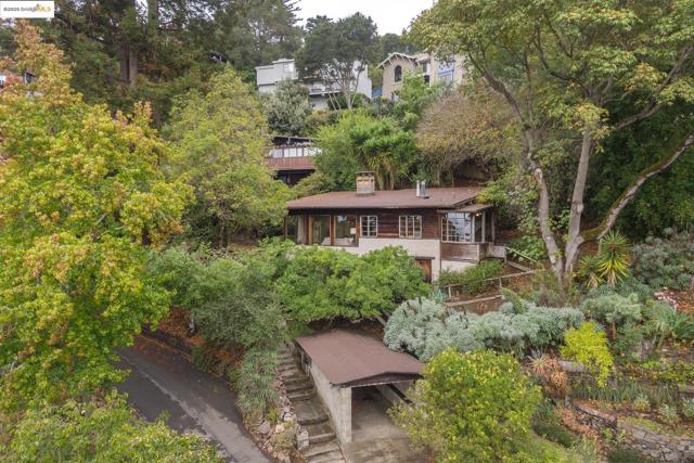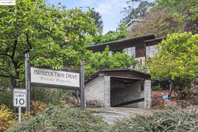 NO OPEN HOUSES. VIEWABLE W/AGENTS. 2 Maybeck Twin Drive, known as Arillaga, is the last home Bernard Maybeck designed. Created in 1951 for his son and daughter-in-law, Wallen & Jacomena & built by Jacomena’s cousin Robert “Red” Kleyn-Schorel, this 2-bd, 1-ba residence rests on an expansive 10,434 sq ft lot in a private enclave, rich with architectural history. The home blends mid-century simplicity—low-slung lines, open glass windows, plywood & a flexible floor plan—with classic Maybeck elements, including steel windows, a striking raised-hearth fireplace & arched beams. Many original details remain intact: navy hatch cover flooring in the living room, Hawaiian sweet gum plywood ceilings, radiant heat in the concrete floors & a warm concrete hearth designed for gathering. Mostly in original condition, Arillaga is ready for thoughtful updating and offers tremendous potential to enhance its character. The property’s verdant setting includes Bay views that can be further opened with tree trimming & landscaping. A lower-level garage exists, though there is also the level-in driveway. Set on Maybeck Twin Drive, near North Berkeley shops, Arillaga offers architectural provenance, vintage charm & exciting possibilities in a nbrhd of landmark homes by renowned 20th-century architects.