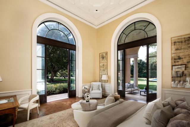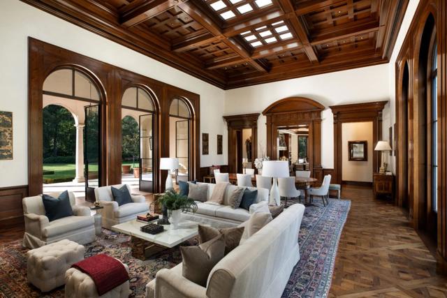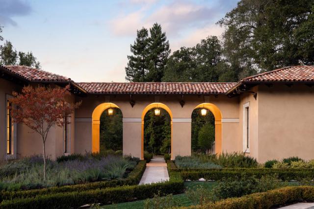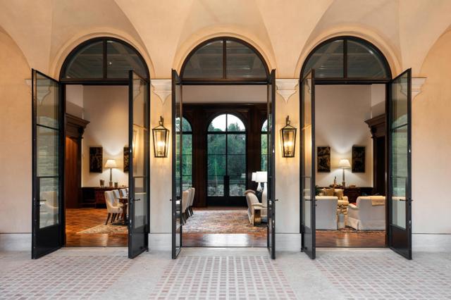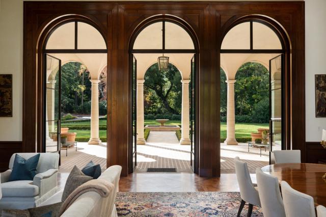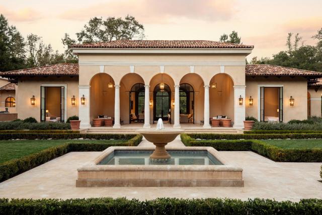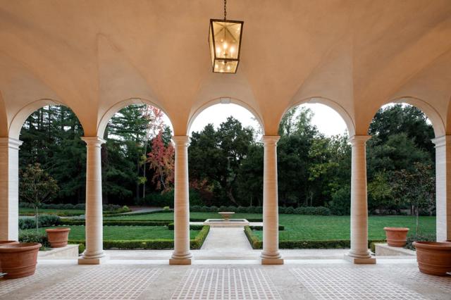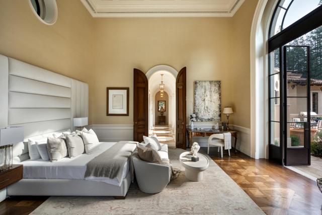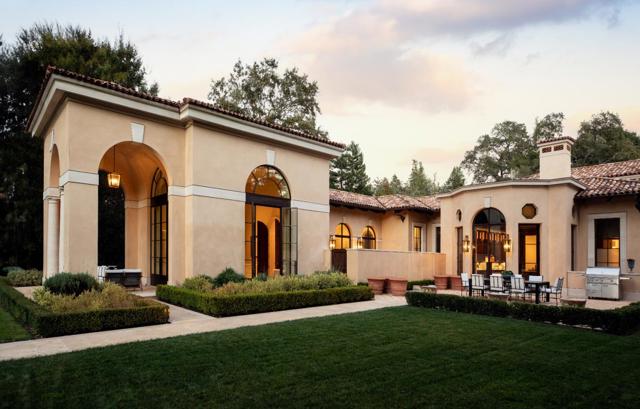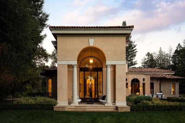 Villa del Prato is a singular gem among Silicon Valley estates. Nestled in the woodlands of Portola Valley on nearly 12 acres of tranquil, private, flat land, the estate comprises three structures: a main house (12,000 sf); an entertainment or business building (6,500 sf); and a pool house (2,000 sf). Inspired by classic Palladian Italian architecture, each structure is reminiscent of a Tuscan villa, featuring soaring arches, 20-foot ceilings, dramatic skylights, solid stone columns direct from Italy, and the finest-quality finishes. The main home, built on two levels, features a one-of-a-kind 900-square-foot dressing suite that doubles as a safe room. Unseen are advanced systems for the comfort and security of residents and guests. The entertainment/business building provides an opportunity for customization. With its towering columns, airy loggia, and spacious ballroom, it could be utilized for entertaining, as a home office, conference center, staff housing, or a home for your next startup. Electrical, plumbing, HVAC, and other key systems are fully fitted out. This grand estate is centrally located close to Hwy 280 mid-way between San Francisco and San Jose, with easy access to major airports and technology and business centers. (All sf info per plans).
