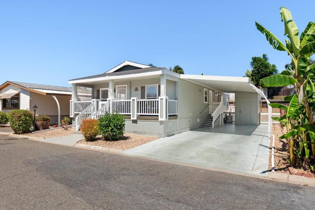 Stunning 2bedroom/2bath PLUS DEN - Manufactured Home in Resort-Like Land-Leased Senior Community - Just 4 Miles to the Beach! Nestled in a serene,well-maintained and vibrant park,this beautifully updated home offers a perfect blend of comfort and style. Boasting 1344 sq ft of living space it has been meticulously upgraded with all-new interior paint, sleek new flooring,and modern 2" blinds throughout.The gorgeous dormer in living room radiates beams of sunlight, enhancing the home's airy and spacious feel, and the vaulted ceilings are expansive. The heart of the home is the inviting kitchen,with open floor plan, and featuring new quartz countertops, a chic backsplash plus new kitchen sink with convenient pull-out sprayer, perfect for any chef. The primary bedrrom is a private retreat,with it's own separate entrance, offering a peaceful sanctuary. The ensuite bathroom is luxurious, with a deep soaking tub, a separate shower, and dual sinks for ultimate comfort and convenience. Outside, you'll love the huge front porch,ideal for enjoying the coastal breeze and outdoor relaxation.The private patio are is perfect for gardening, enteretaining,or simply unwinding in your own space. A big shed provides extra storagae for your belongings.Powerful A/C unit included plus 2 year old washer and dryer convey in their own separate laundry room. New landing, stairs and railing on rear entry. The park has 2 pools, spas,clubshouses,pickleball court and social activities.Pet friendly, trees and grass abound. Close to eveything for shopping and dining and strolls on our beautiful beaches.