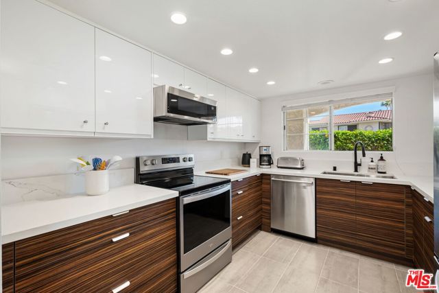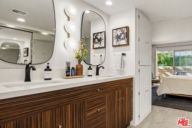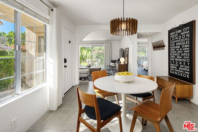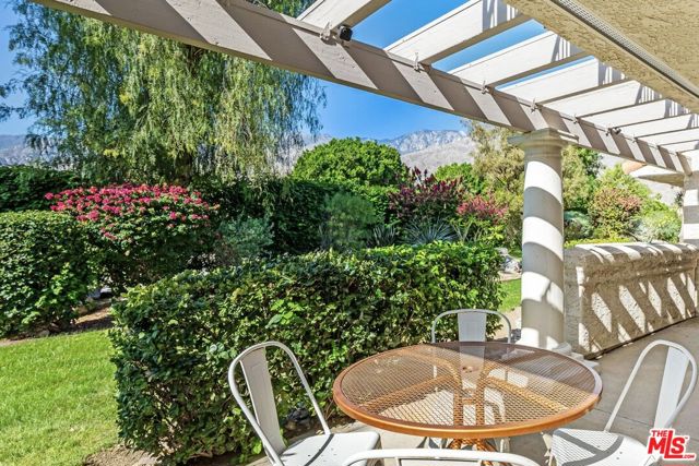 Welcome to Mesquite Modern on Prescott Nature Preserve, an ultra-rare modern remodeled retreat with panoramic San Jacinto Mountains views and direct access from the community grounds to the Prescott Nature Preserve, offering miles of trails and breathtaking 360-degree Coachella Valley views right outside your door. Located within the gated Mesquite Country Club community, known for its resort-style grounds with three pools and spa areas, tennis courts, and vibrant, beautifully landscaped gardens, this meticulously remodeled FEE SIMPLE corner residence also offers a highly desirable 7-day minimum short-term rental allowance. With a strong history of rental income, it presents an exceptional opportunity for the savvy investor or anyone looking to enjoy now and eventually retire in this dreamy desert escape. Step inside and you're immediately drawn into a light-filled living space, with mountain views creating a calming backdrop. The open layout flows effortlessly into a striking, fully remodeled kitchen featuring seemingly endless quartzite countertops, a deep basin sink, modern cabinetry, and sleek stainless steel appliances designed for both everyday living and entertaining. The unit's split floor plan offers ideal privacy, with primary and guest suites at opposite ends, each opening to its own private patio with peaceful greenery or mountain views. Bathrooms evoke a spa-like ambiance with quartzite vanities, ambient lighting, and large glass-enclosed showers with rainfall and handheld fixtures. In the primary suite, unwind with a dual vanity dressing area, expansive closets, and frameless mirrored doors, then wake up and take in serene mountain views. The guest suite features mirrored closet doors and the flexibility of its own private entrance through sliding doors. The owner spared no expense with thoughtful upgrades throughout, including a newer HVAC system (barely 3 years old), a newer side by side washer and dryer, luxury window treatments (including blackouts in bedrooms), professionally finished interiors with premium paint, large modern cool-to-the-touch tiled floors, and smart home features including a Nest thermostat, Schlage keyless entry, and exterior cameras for ideal remote monitoring and access. At last, step outside onto the oversized private terrace of this ground-floor residence, where lush greenery, mature trees, and mountain views create a truly enchanting setting. With direct access to the community's sprawling lawn, mornings begin effortlessly - coffee in hand, barefoot underfoot. On the other hand, evenings invite you to unwind with a sunset cocktail as golden light settles over the San Jacinto Mountains. Incredibly located next to Ralphs, CVS, Starbucks, Aspen Mills Deli & Bakery, a short walk/stroll away, and with downtown Palm Springs & Palm Springs International Airport within a 5-7 min drive. Whether as a full-time residence, seasonal escape, or income-producing property, this home offers exceptional versatility. Low HOAs include water, trash, cable TV, high-speed internet, and select streaming services, a covered carport, and many guest parking spots. Come experience Mesquite Modern today!