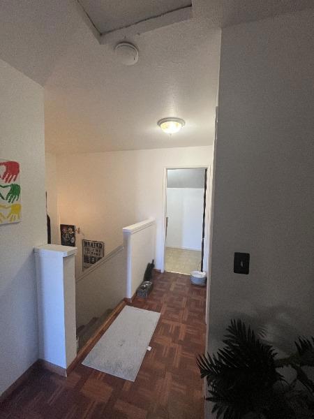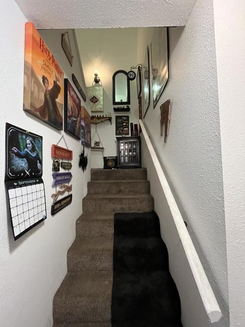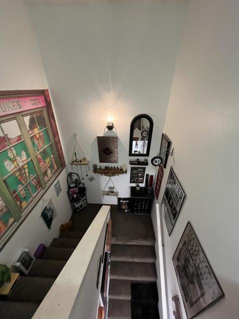 This 2-story townhome is a fantastic find for anyone seeking comfort and convenience. The layout is thoughtfully designed, with a spacious main floor featuring vaulted ceilings and a family room that flows seamlessly into the dining area. Step through the sliding glass door to a private patio, perfect for a small garden or a quiet moment, with a gate for street-side entry. Upstairs, the two bedrooms both open onto a shared balcony, giving you a private outdoor space to enjoy. The upstairs full bathroom is brightened by a skylight and includes a shower over the tub. A large utility room on this level provides washer/dryer hookups and plenty of room for all your storage needs. With two covered carports right outside your door and a shared common courtyard, this home offers easy living in a prime location near local amenities and freeway access.