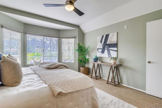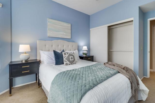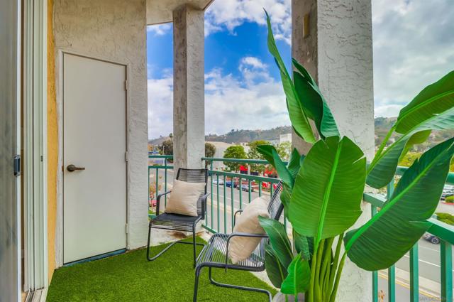 Your PENTHOUSE awaits! Welcome to this rarely available TOP FLOOR, SOUTHWEST facing, CORNER UNIT, offering green canyon VIEWS, and situated in one of Mission Valley’s most desirable communities - River Colony! Step inside to an inviting open layout featuring luxurious porcelain tile flooring, an upgraded kitchen with stainless steel appliances, and a cozy fireplace for those chilly evenings! Be amazed by an abundance of natural light from multiple windows that brighten every space, complemented by custom blinds, including room-darkening shades in the primary bedroom. Both bathrooms have been tastefully updated, and each room includes ceiling fans for added comfort. Enjoy the convenience of your own PRIVATE WASHER and DRYER, a recently maintained HVAC system, wired internal alarm system, and TWO assigned side-by-side parking spaces in the gated underground garage. A Ring doorbell, Google Nest thermostat, and BBQ grill adds extra value and modern convenience. River Colony residents enjoy resort-style living with access to a sparkling pool and spa, a fully equipped fitness center, a clubroom, and a Wi-Fi lounge, all maintained by a well-managed HOA. Ideally located near San Diego’s best shopping, dining, and trolley access, this home offers the perfect combination of comfort, style, and convenience. Don’t miss your opportunity to make this beautiful top-floor retreat yours, just in time for the holiday season!