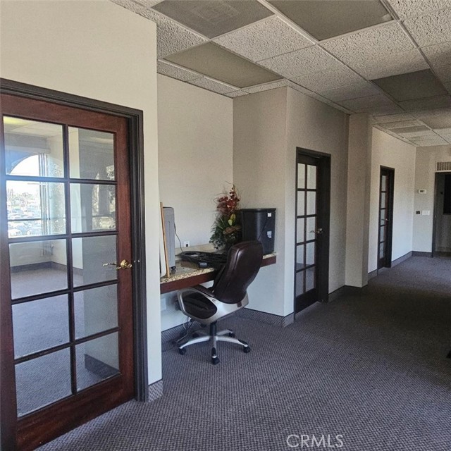 Upstairs Office space for rent! Great location easy access to the 15 freeway! Approximately 2500 square feet, with a covered balcony. 4 Private offices, built in workspace and plenty of other space. Ample number of electrical outlets, Interior freshly painted, carpets freshly cleaned. Kitchen and 2 bathrooms. 2 staircases. Water, trash, gas, and landscaping included in the rent. Approximately 12 parking spaces. Tile flooring in kitchen hallways and bathrooms.