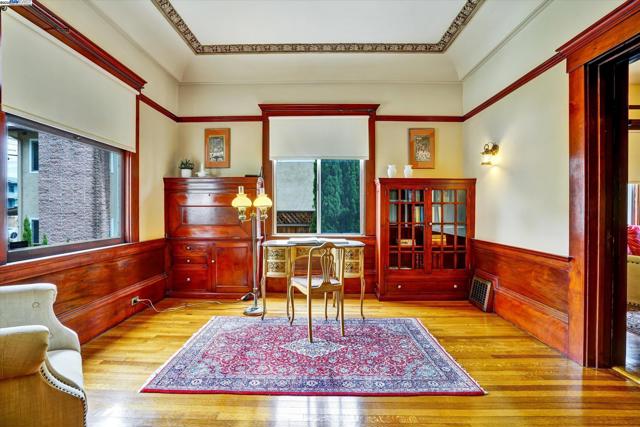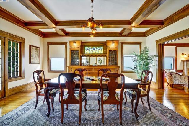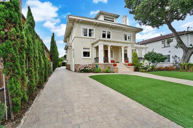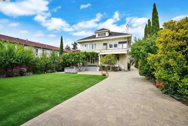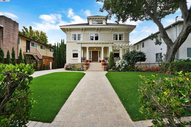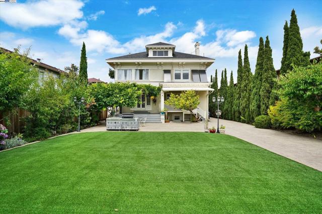 Stately Elegance Meets Everyday Livability. Built in 1912, this Colonial Revival masterpiece, designed by architect William Dufour, is his largest & most ambitious home. Set on a 11,000 sq ft lot, this grand Alameda property blends timeless craftsmanship with space and versatility that's rarely found today. With 5 spacious bedrooms, it offers room to grow, gather, and put down roots. Marvel at the exquisite architectural details—high ceilings, rich woodwork, oversized windows, and formal rooms built for entertaining. An eat-in kitchen connects to a classic butler’s pantry, which transitions to the formal dining room—perfect for hosting or everyday ease. Outside, the magnificent back garden is a true retreat—lush, private, and ideal for entertaining, play, or unwinding. A long driveway leads to a detached garage, ideal for an ADU conversion, workshop, or creative studio. Need more room? A giant basement offers bonus space today and the cavernous, unfinished attic is brimming with potential-the possibilities are endless. Explore Alameda and see why so many fall in love with island living. From its charming neighborhoods to its strong sense of of community, this is a place where connections run deep and the pace just feels right. Come see why this is your forever home.