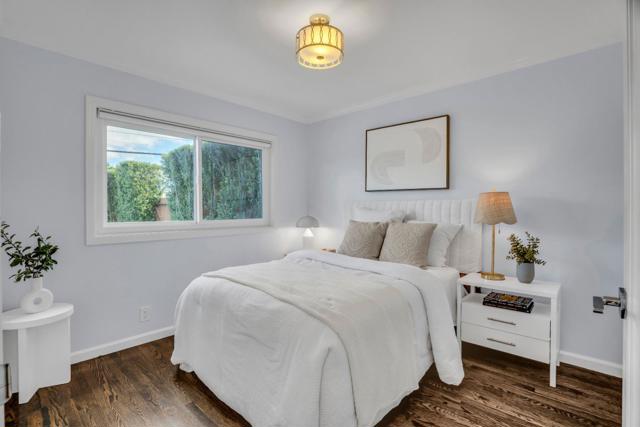 Perfectly placed on a coveted corner lot, this modern and comfortable home delivers easy every day living, elegant design, and an exceptional location in the heart of the Peninsula. Enjoy seamless indoor and outdoor living flow with a beautifully manicured fenced-in front yard and an extensive private backyard with mature fruit trees, plants and a shed, primed for relaxing and entertaining. The stylish kitchen has stainless steel appliances, a 5-burner gas stove, a tiled backsplash, and ample counter space. Additional highlights include abundant natural lighting, double-pane windows, engineered hardwood floors, a cozy living room with tiled fireplace, 2 comfortable size bedrooms, and a contemporary bathroom. A finished garage offers a versatile space for a gym, hobby/media room, or extra storage. The generous and flat 5,484 sqft lot provides opportunities for future expansion or an ADU. Sewer lateral compliant, with a newer roof, new water heater, and fresh interior and exterior paint, this house is ready for its next owner to enjoy. Minutes from highly regarded Aragon High School, the Bay Trail, Seal Point Park, downtown San Mateo, Bridgepointe and Hillsdale shopping centers, and access to major highways and public transportation, don't miss this chance to call Shoreview home!
