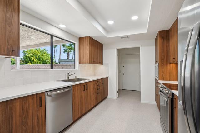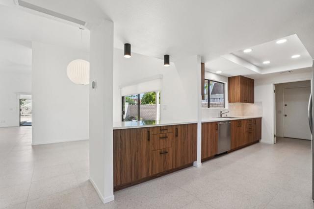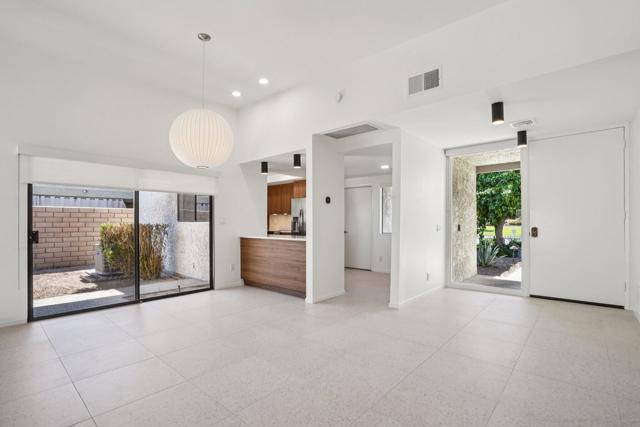 Step into timeless desert elegance with this exceptional residence, part of an intimate enclave of just 28 private, detached homes designed by legendary mid-century modern architect Donald Wexler. Rarely available, these homes showcase the iconic design elements that have made Wexler a celebrated name in Palm Springs architecture, thoughtfully updated here with modern finishes for today's lifestyle. Inside, you'll find a spacious 3-bedroom, 3-bath layout highlighted by terrazzo-inspired flooring, abundant storage, and two new Carrier A/C systems for year-round comfort. The fully remodeled, mid-century inspired kitchen features stainless steel appliances, sleek cabinetry, and clean lines that perfectly honor the home's architectural heritage. An attached indoor laundry room, oversized closets, and a 2-car attached garage add convenience and functionality. The primary suite is a private sanctuary with a walk-in closet, dual vanities, a soaking tub, and a separate shower. Expansive glass doors invite natural light and frame views of your own private backyard that is awaiting your personal touch. Beyond your retreat, enjoy resort-style amenities including a sparkling community pool and tennis courts, all nestled within lush landscaping. Perfectly situated near the prestigious Tamarisk neighborhood of Rancho Mirage, this home places you close to world-class golf, fine dining, shopping, and cultural attractions while still offering privacy and serenity. This rare combination of architectural pedigree, modern upgrades, and an enviable location makes this home a true desert treasure. *Property is listed as a a Single Family Residence, however property records clasify as a Condominium. HOA dues are $650 per month, includes community ammenities, cable and internet. This is lease land with a fee of $5300 per year, lease goes to year 2067.