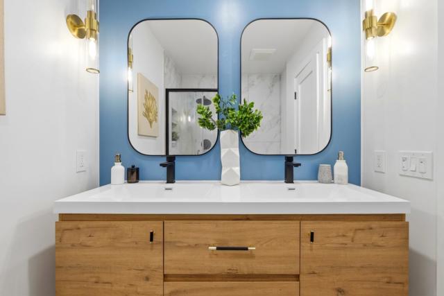 Thoughtfully reimagined, this stunning residence offers a perfect blend of sophisticated design and comfortable everyday living. Sunlight fills the homes open and inviting interior, highlighting new engineered hardwood flooring, fresh interior and exterior paint, custom trim and baseboards, new doors, and elegant designer lighting throughout. At the heart of the home, the beautifully redesigned kitchen features stylish new cabinetry, stainless steel appliances, updated fixtures, skylight, and a generous island ideal for gathering. The flexible layout provides space to relax and entertain - find solace in the additionally family room upstairs. The spacious primary suite offers a private escape complete with a walk-in closet, soaking tub, and separate shower. Additional upgrades include new sliding doors, and a sleek electric fireplace set against a custom wood accent wall. The finished two-car garage features an epoxy-coated floor for a polished touch. Set along a peaceful tree-lined street, this home offers exceptional convenience just minutes from the Municipal Rose Garden, Santana Row, Valley Fair, and major commuter routes to Silicon Valley.