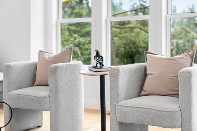 Tucked into Montclairs peaceful wooded hills, this contemporary residence offers exceptional privacy, generous natural light, and a highly functional multi-level layout. The main floor centers around a chefs kitchen equipped with Viking appliances and an LG InstaView refrigerator, seamlessly connected to the dining room and two bright living areas with skylights, a wood-burning fireplace, and a tiled balcony for enjoying morning coffee or evening breezes. All four bedrooms are thoughtfully placed for comfort: three feature en-suite bathrooms and direct access to outdoor patios, including a spacious primary suite with hillside views. The lower-level bedroom with its own entrance provides flexibility for in-laws, an au pair, extended guests, or work-from-home needs. Terraced outdoor spaces climb the hillside and offer multiple areas to relax among serene treetop vistas. Additional amenities include a ground-level laundry area, a three-car garage plus extra off-street parking, and close proximity to Montclair Village, parks, trailheads, top-rated schools, and the long-established Hills Swim & Tennis Club. A rare opportunity to enjoy both privacy and convenience in one of Oaklands most desirable neighborhoods.