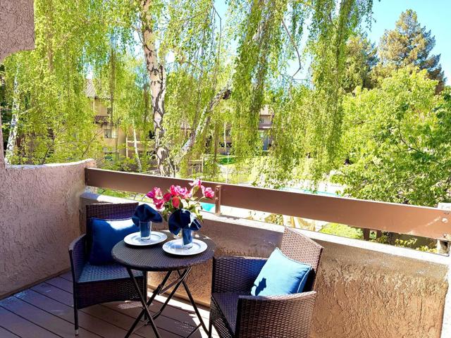 Overlooking the sparkling swimming pool, and red Spanish tile roofs in the community, this is one of the best locations in Coronado Vilas. This upper level 2-bed, 2-bath corner home comes with a private entry. Enjoy a picnic lunch on the deck on a warm California day, or retreat inside to spend time with family and friends. Enjoy both technology and convenience. Enhanced as a smart home, you can control functionality with your cell phone. Remodeled kitchen and bathrooms. Upgraded bathroom heated fans. Cozy carpet in the living areas, and convenient tile in the kitchen and bathrooms. Ample storage with two closets in the primary suite, coat closet, guest bedroom closet, and storage off deck. Reserved underground parking space and additional parking behind the building. Coronado Villas is a private, gated community in a park-like setting, with lush trees and flowers. Amenities include the swimming pool, spas, fitness center, BBQ area, car wash area, and playground. Located in the heart of Silicon Valley, near 101, 880, high tech employers, Santa Clara Town Centre (Target), Santana Row, bike trails, and Levi's Stadium.
