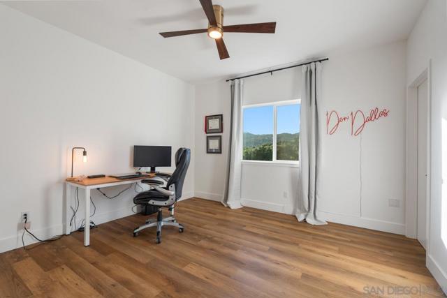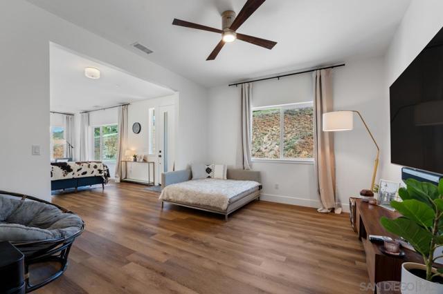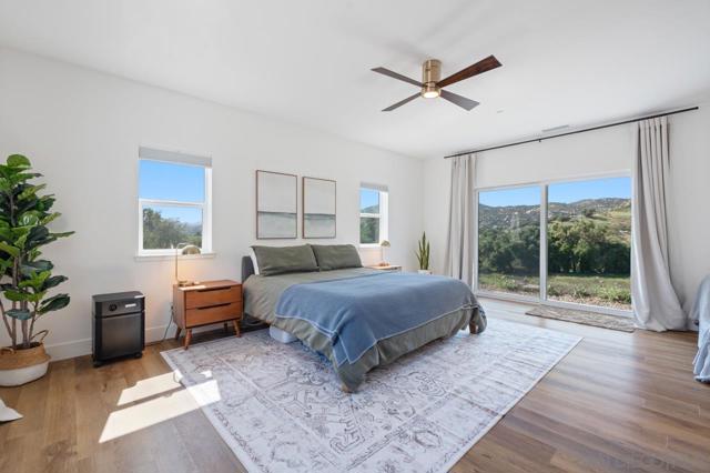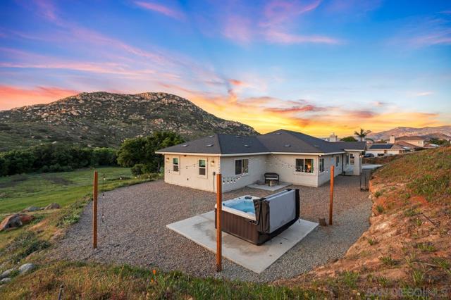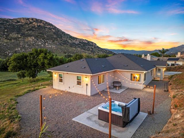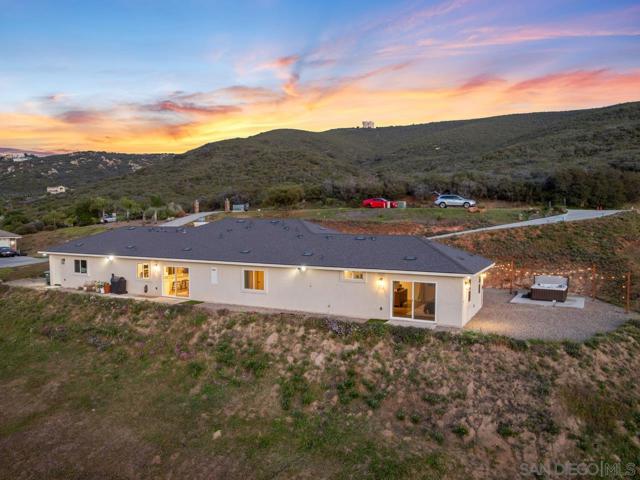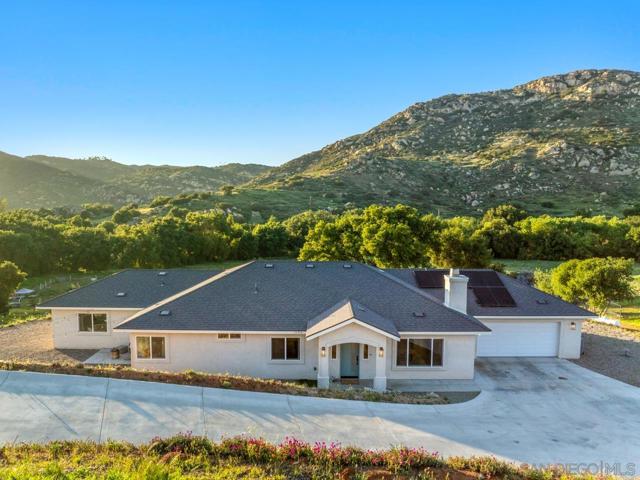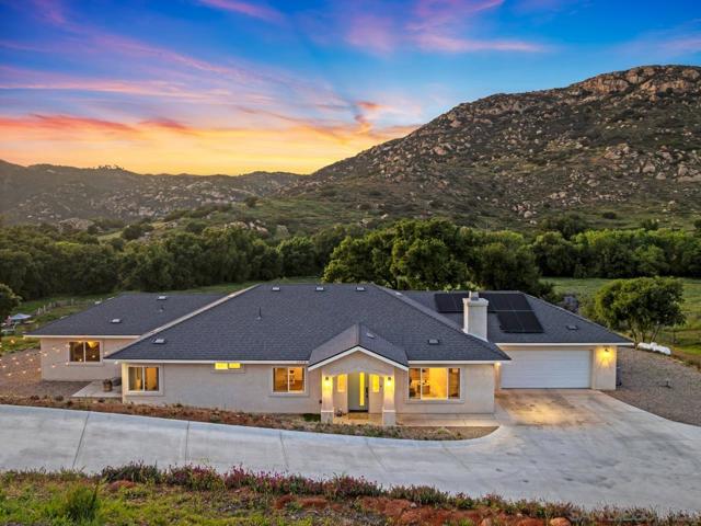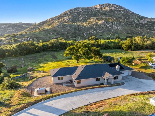 Don’t miss this exceptional opportunity to own a stunning 2022 custom-built home! Nestled on an oak-studded, 2+ acre lot with a seasonal creek, this property offers panoramic views of the mountains, valley, and breathtaking sunsets. Thoughtfully designed with 9' ceilings, the home features a spacious great room complemented by a modern wood-burning fireplace with a propane hook-up. The gourmet kitchen boasts Quartzite countertops, a large center island, and a convenient walk-in pantry, making it a perfect space for entertaining. For added security, the entire exterior of the house is wired with Cat6 cables to a closet for future security cameras (non-installed), ensuring your peace of mind. The primary bedroom retreat is a serene escape, complete with private patio access and a luxurious primary bathroom. This residence includes 3 bedrooms, an office/den that can serve as a 4th bedroom, and 2.5 baths, all while providing ample space for a vineyard, potential shop, or ADU. The oversized garage features insulated drywall and an insulated garage door for added comfort. Step outside to discover a concrete pad with a jacuzzi, wired for 240V, perfect for relaxation. Additionally, power has been run to the top of the driveway, allowing for future lighting and/or a gate. With attractive LVP flooring throughout, and owned solar, this zero-entry home is ideal for those who appreciate a blend of country living and modern convenience!