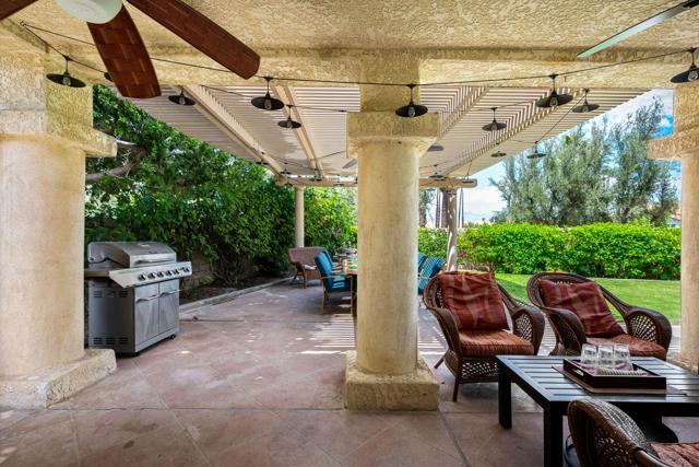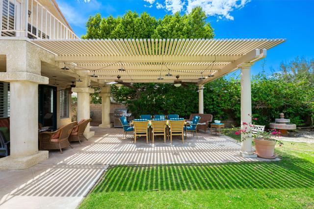 NEW PRICING ~ EXCEPTIONAL VALUE! Beautiful 4-bedroom/5 bath home tucked away on a private third of an acre quiet Cul de Sac in the highly desirable Enclave of ''The Links'' within Desert Falls Country Club. Situated on a massive 13,939 Sq Ft lot with upgraded, and resurfaced Pebble Tec Pool and Spa this home is the perfect Desert Resort Retreat! Tennis, Pickleball, and Fitness Center amenities included in the HOA Dues. Golf Memberships may be purchased or choose to pay as you play Desert Falls highly rated 18-hole Scottish Links Championship Course. The home has heaps of space with a sitting room, dining room, and TV room, and the Central location is of course the Entertainer's Kitchen, complete with comfortable seating around an oversized island for guests to enjoy being in the center of it all whilst chef has everything under way prepping for ongoing indoor/outdoor entertainment. The kitchen boasts granite countertops, high quality custom cabinetry, and a Dacor gas range to elevate the cooking experience and support effortless entertaining. French Doors open out to an extended covered patio complete with gas BBQ, dining table and comfortable covered seating area with multiple fans and lighting to enjoy the entire day and evening in true resort-style enjoying all this property has to offer including a beautifully resurfaced Pebble Tec pool and spa, mature trees providing shading around the yard and quiet seating areas. The oversized Primary suite is complete with spa style bath, walk in shower, dual vanities, walk-in closet and a two-sided fireplace to add warmth and coziness to your spa experience. French Doors open out to a private balcony overlooking this beautiful private resort property with mountain views. Three additional en-suite bedrooms are spaced for comfort and privacy. Additional features include 3 fireplaces, plantation shutters throughout, porcelain tile flooring, a half-bath powder room off the main living area, a laundry room with new Energy Efficient Maytag Washer/Dryer, attached 2 car + golf cart garage with built in storage cabinetry and 2 new ''York'' Air Conditioning units and new water heater! The Links @ Desert Falls is ideally and centrally located mid valley, within walking distance to shops, and restaurants. Just five minutes from Acrisure Arena, Agua Caliente Casino, and El Paseo a 2-mile boulevard of upscale Shops, Restaurants & Galleries, and only 10 minutes to downtown Palm Springs. Call today for private showing!