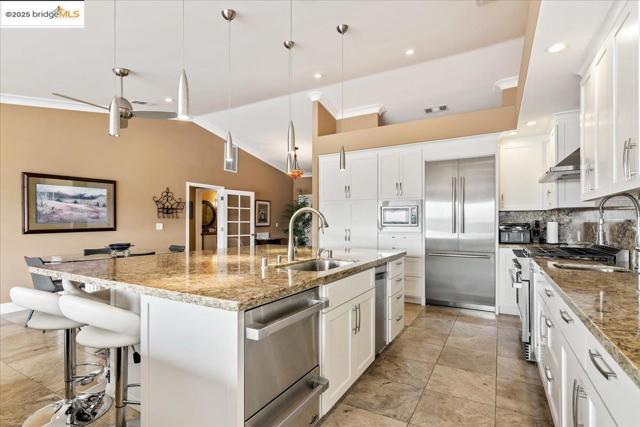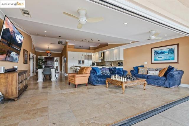 Stunning Waterfront Retreat in Discovery Bay Welcome to 231 Discovery Bay Blvd — a beautifully remodeled waterfront oasis offering the perfect blend of luxury, comfort, and California coastal charm. This 4-bedroom, 3-bathroom home was completely renovated in 2013 and is designed for seamless indoor-outdoor living. Step into a spacious open-concept layout adorned with travertine tile flooring and radiant heated floors throughout. The gourmet kitchen features sleek stainless-steel appliances, a double-door dishwasher, trash compactor, and a large island perfect for entertaining. Enjoy breathtaking sunrises from your expansive deck with frameless glass railings, or relax under the covered patio with a Mediterranean flair. The NanoDoors patio door opens wide to let in the breeze and blur the line between inside and out. Boaters will love the two private berths — one with a hydro hoist and the other a covered 40' slip — just 3 minutes from fast water. With an eastern exposure, every morning feels like a vacation. This home is the Perfect set-up for an VRBO or AirBNB. This is more than a home — it’s a lifestyle.