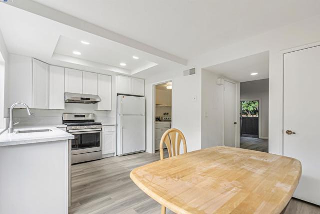 Discover this charming 2-bedroom, 1-bathroom home located in the vibrant city of San Jose. With 1,042 sq ft of living space, this residence offers a cozy and functional layout. The kitchen is a highlight, featuring a gas cooktop, granite countertops, dishwasher, hood over range, and oven range - gas, perfect for culinary enthusiasts. Enjoy meals in the convenient eat-in kitchen dining area. The interior features new laminate wood flooring, adding a modern touch, while the central forced air heating keeps the space comfortable. A fireplace enhances the living area, providing a warm ambiance during cooler months. Laundry is conveniently located inside, offering ease and practicality. Additional amenities include a community pool, ideal for relaxing and socializing. The home is situated within the Berryessa Union Elementary School District. Convenient access to 680, and 101 freeways. With a 2-car garage, this property provides ample parking and storage space. Don't miss the opportunity to own this delightful San Jose home, offering a blend of comfort and convenience.