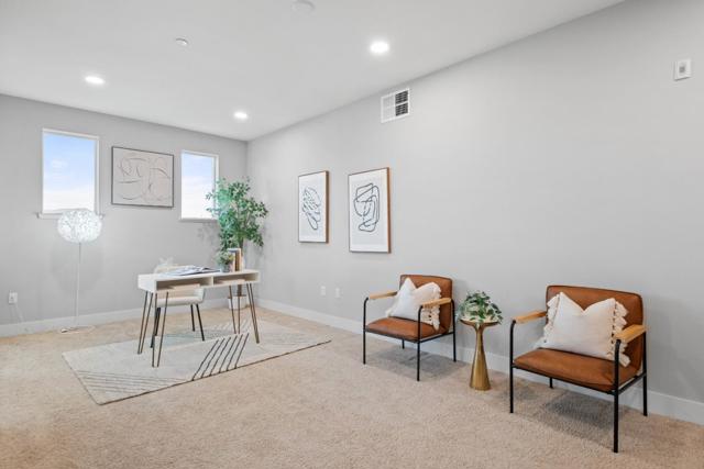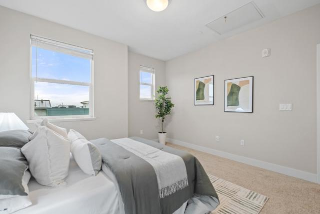 *Dramatic high ceilings, mountain views, top-rated schools, and a corner-unit setting define this exceptional 7-year-new home with bright, open living. Natural light fills the living, dining, and kitchen areas, which flow seamlessly to a private patio.*The kitchen features a large center island, ample cabinetry, sleek backsplash, premium stainless steel appliances, and a Thermador stove. A rare ensuite bedroom is located on the main level. Upstairs, a spacious family room or loft opens to a covered patio. *The primary suite offers mountain views, dual sinks, a walk-in closet, and extra storage. Upgrades include recessed lighting, multi-zone HVAC, and in-home laundry. *A 2-car garage includes storage and an EV charger. Owned solar (8 panels) with battery backup installed ~Dec 2025. Prime location, walk to Great Mall and Trader Joes; minutes to Costco, 99 Ranch, and H Mart. Easy access to BART, VTA, and Highways 880/680. Top-rated schools: Mabel Mattos (10/10), Rancho Milpitas (9/10), Milpitas High (9/10) per GreatSchools. Near major employers like NVIDIA, Google, Apple, Supermicro, and Cisco