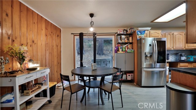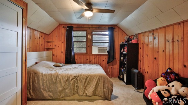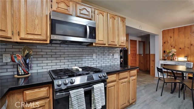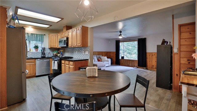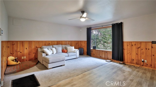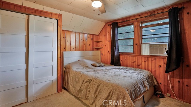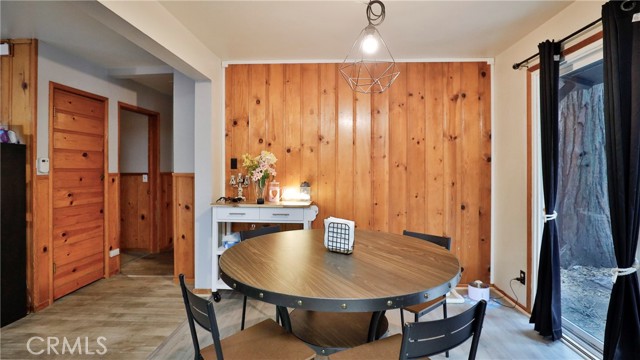 Charming cabin-style home in Crestline featuring 3 bedrooms and 2 bathrooms. The cozy living room with carpet flows into a galley kitchen complete with sleek black quartz counters and ample cabinet space, opening to the dining area with easy access to the back patio. The main level offers 1 bedroom and 1 bathroom, while the upper level includes 2 additional bedrooms and a full bath. Generous storage is found throughout, with closet space, an attic between the upstairs bedrooms, and even a basement—perfect for mountain living.