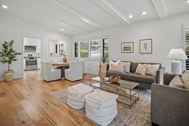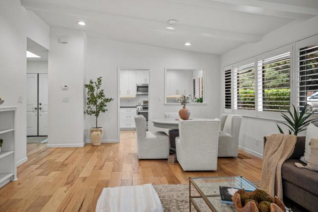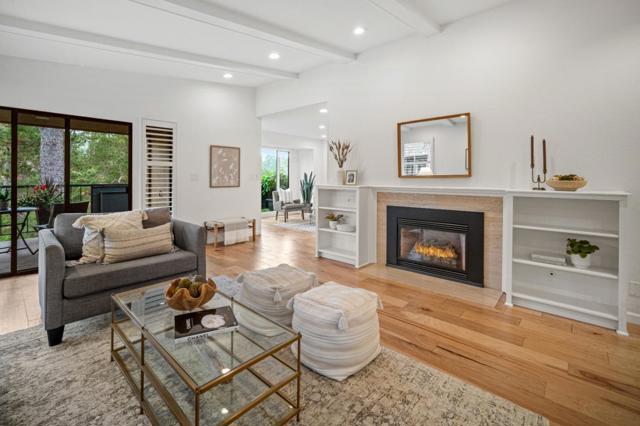 Nestled in Carmel's most premier retirement community of Del Mesa Carmel, this exquisite bungalow and popular "B" model offers the perfect blend of sophistication, comfort and tranquility. Gleaming wood floors, vaulted ceilings, custom plantation shutters & Hunter Douglas blinds set the tone for a light-filled interior that frames the serene forest and canyon views. Designer updates are featured throughout, including a fabulous chef's kitchen equipped with high-end stainless steel Bosch appliances, custom cabinetry, quartz countertops, and custom lighting, ideal for the passionate cook. Relax by the cozy gas fireplace that anchors the living space. The versatile den or office, with a wine refrigerator, provides a quiet retreat for work, reading, or relaxation. Every detail reflects refined taste and timeless style, creating an atmosphere of effortless elegance. In Del Mesa Carmel, residents enjoy the best of resort-style living with highly acclaimed Woody's Restaurant & Lounge, on-site maintenance, indoor heated pool & spa, clubhouse, activities, events, a 24-hour guard gate, acres of walking paths, and more, all surrounded by the exquisite beauty and serenity of this natural habitat. This is more than a home; it's a lifestyle of grace, community, and ease.