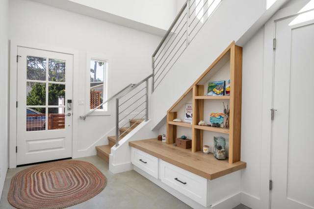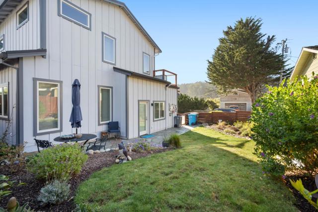 Welcome to Moss Beach, where coastal living meets modern comfort. This light-filled and inviting home features 3 bedrooms and 3 full baths, including a ground floor primary suite with oversized tub and accessible shower, and an upstairs primary suite offering oversized tub and stall shower. The home boasts 2 bedrooms on the ground floor, with ample storage including walk-in closets. The bright and open kitchen is equipped with quartz countertops, an electric oven, and a wine refrigerator, seamlessly integrated into a family room combo perfect for casual dining. Enjoy radiant heated concrete and hardwood flooring throughout the home. Full perimeter fencing surrounds the spacious landscaped yard and garden areas. The two-car garage is fully finished with epoxy floor and storage systems, plus Level 2 electric vehicle hookup. The home includes energy-efficient features like double pane windows, passive solar, 2 Tesla power walls. Enjoy the friendly neighborhood, just steps from Fitzgerald Reserve and the Pacific Ocean. Views of the Moss Beach Enchanted Forest are lovely from upstairs balconies! This home offers a perfect blend of style and functionality, and convenient location close to Highway 1 within commutable distance to SF, Peninsula and South Bay locations. Welcome Home!