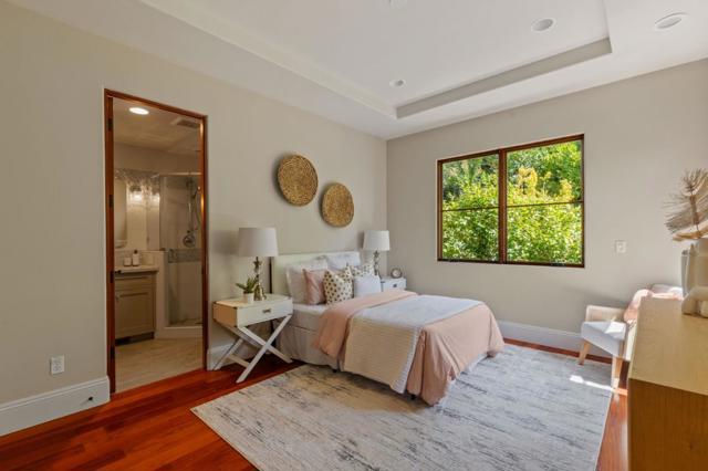 Custom-built Mediterranean-inspired estate (2011) offering panoramic Monte Bello views from each level. Nestled on a quiet cul-de-sac, this 5,693 sq ft residence combines timeless charm with modern luxury. Features include a chefs kitchen with Thermador appliances and RO filtration, a home theatre/game room with acoustic wall panels, and indoor/outdoor surround sound throughout. The home starts with serene entry with colorful garden beds, greenery and water fountain. An open family room and kitchen that opens to expansive decks with sweeping vistas. Thoughtfully designed for wellness and multi-generational living, the main floor hosts three en-suite bedrooms, while the lower level includes two additional bedrooms, a family/media room with its own large patio, and dedicated wine-closet space awaiting your personal touch. Eco-friendly amenities abound including owned solar panels, dual EV chargers, soft-water and carbon filtration systems, whole-home HRV for fresh air, and interior fire sprinklers. Incredible Views and only minutes from downtown Los Altos, premier schools, and I-280 access.