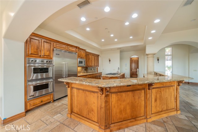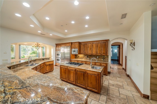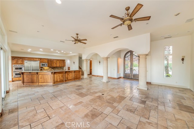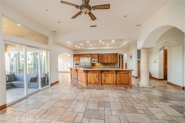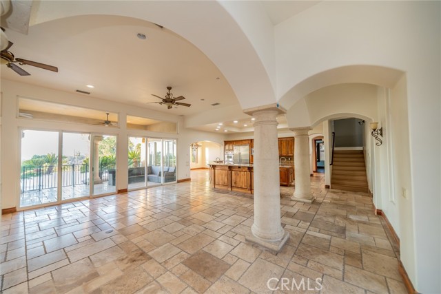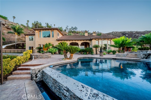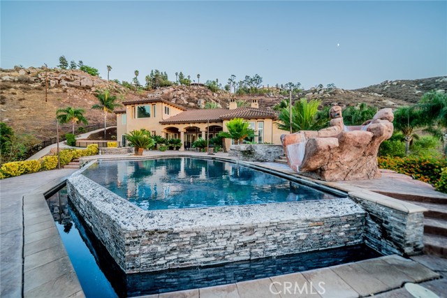 HAWARDEN HILLS – Tuscan-Inspired Luxury Estate Perched high at the top of Riverside’s most exclusive enclave, this ultra-custom privately gated estate on Piedmont Drive defines elegance, privacy, and breathtaking views. Nestled on 2.37 acres in the prestigious Hawarden Hills community, this Tuscan-inspired residence was designed to capture sweeping 180° panoramas of Downtown Riverside, Mount Rubidoux, and the sparkling city lights below. From the moment you arrive through the custom iron gate, a private stone-paved driveway lined with lush palms welcomes you into your own secluded sanctuary. Spanning over 5,300 square feet, this grand estate offers 5-6 bedrooms, 4 bathrooms, and a masterful blend of craftsmanship, luxury, and comfort. Inside, the dramatic iron-and-glass entry sets the stage for soaring ceilings, a massive great room with a statement fireplace, and walls of windows framing endless views. The gourmet kitchen is a chef’s dream, complete with Viking appliances, granite countertops, a large center island, and seamless flow into both the formal dining room and the patio—perfectly blending indoor and outdoor living. The owner’s suite is a true retreat, featuring a spa-inspired bath, an expansive walk-in closet, and private access to the terrace. A guest suite and a flexible study/exercise room complete the main level, while the upper floor unveils a sprawling game room with a bar, plus two additional ensuite bedrooms, each with walk-in closets. Step outside to an entertainer’s paradise: an infinity pool and spa with unobstructed skyline views, a custom gas firepit, a sail-shade covered lounge, and a private play area—all thoughtfully designed for relaxation and gatherings. The grounds are completed by a spacious 4-car garage and abundant outdoor terraces to enjoy the California lifestyle. This estate is more than a home—it’s a statement of refined living in one of Riverside’s most coveted addresses.