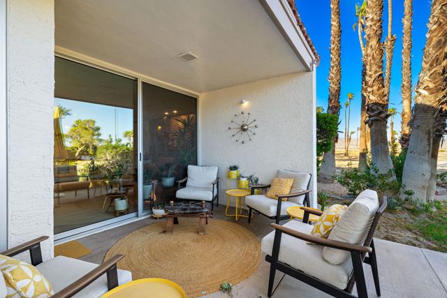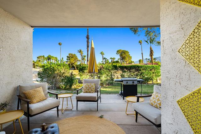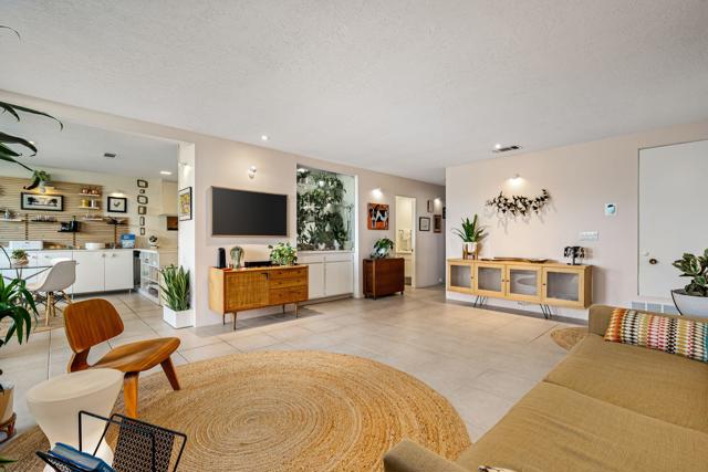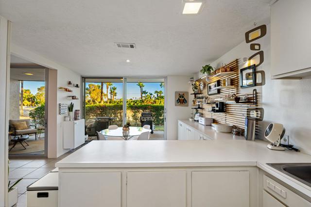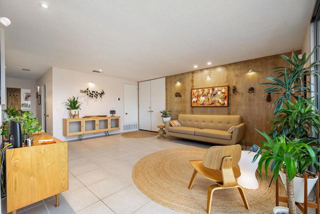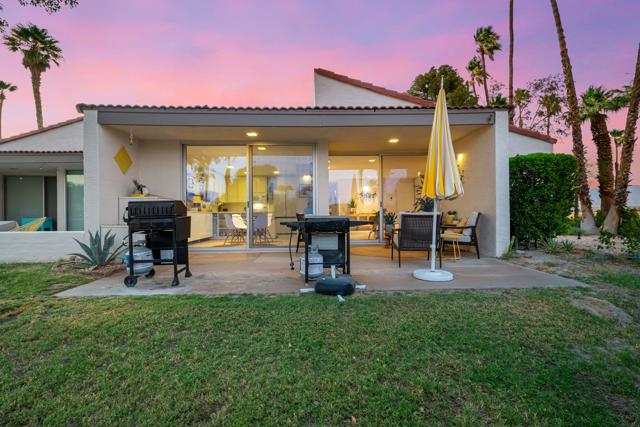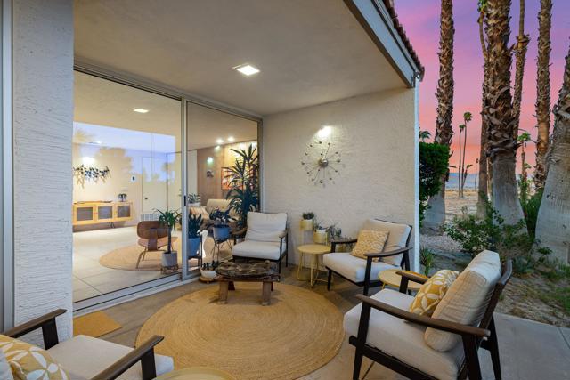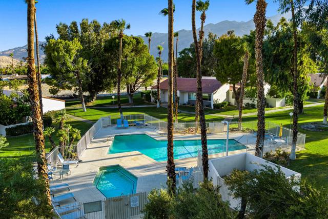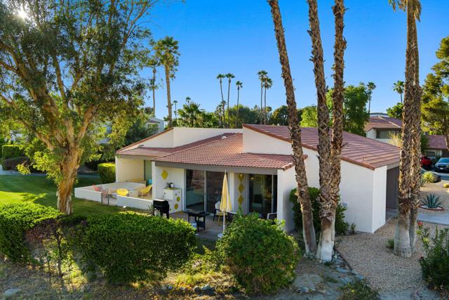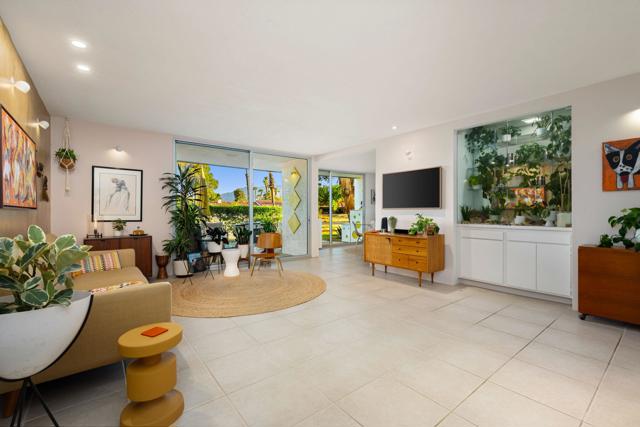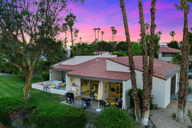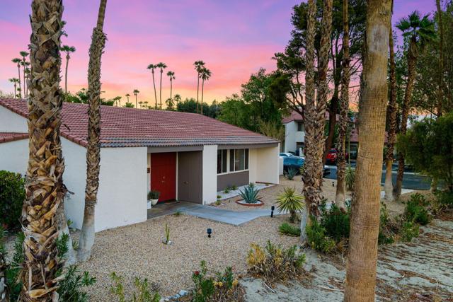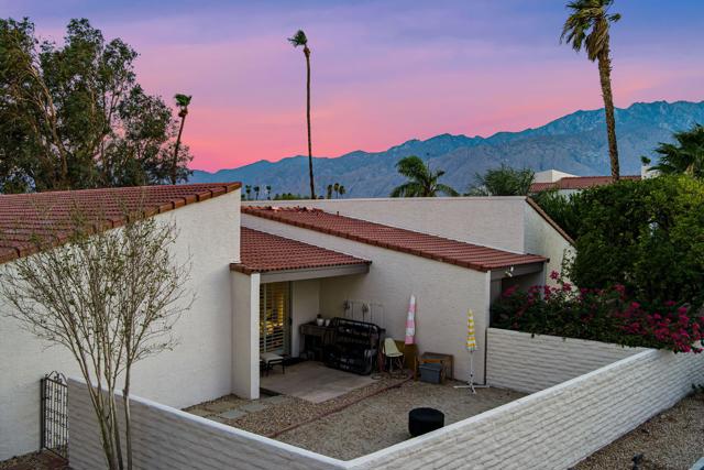 Modern Desert Living by William F. CodyLocated in the gated Palm Springs Country Club, this rare end-unit 3-bedroom, 2-bath home offers 1,420 sq ft of timeless mid-century design by renowned architect William F. Cody. Nestled at the back of the community for maximum privacy, the home showcases Cody's signature elements--floor-to-ceiling glass, soaring doors, and abundant natural light throughout. Enjoy panoramic views of the mountains, adjacent park, and even the CV Link from your expansive double rear patio--perfect for capturing endless desert sunsets.Interior highlights include upgraded wall treatments, designer lighting, and newer appliances, including a sleek Samsung white glass refrigerator. A private front patio adds to the home's indoor-outdoor appeal.Fee-simple land ownership with a low $499/month HOA that covers building and grounds maintenance, pools and spas, water, trash, cable, and internet. Washer and dryer included. Ideal as a full-time residence, weekend retreat, or investment property.
