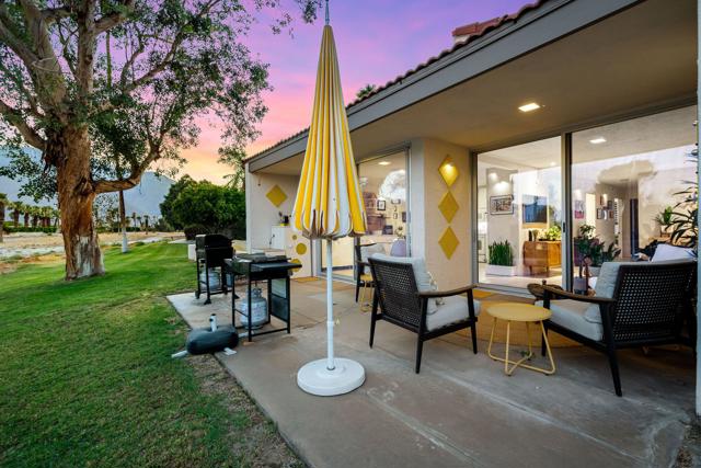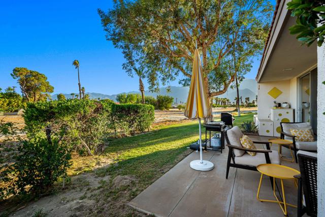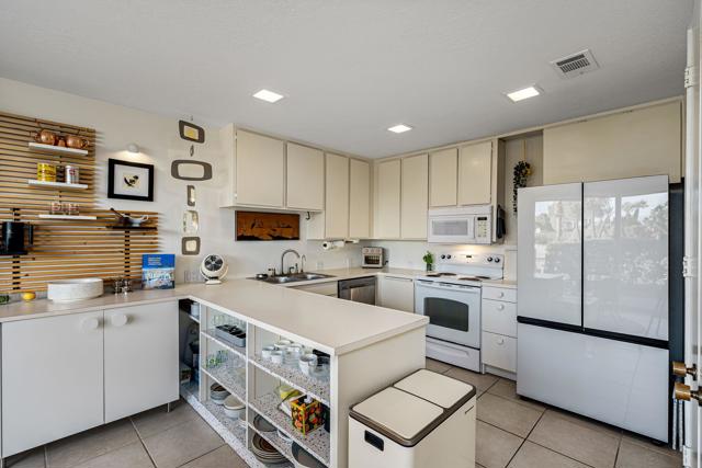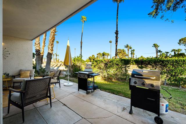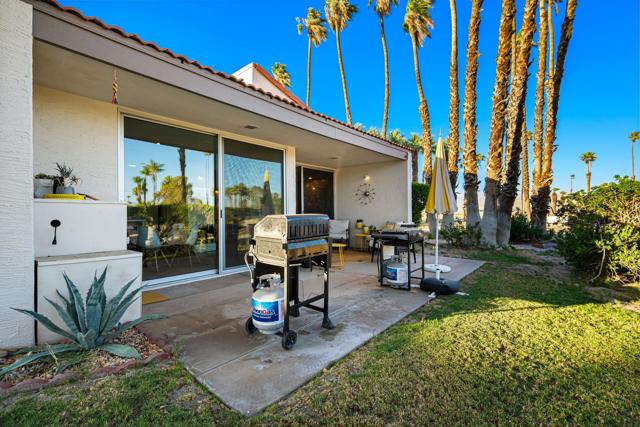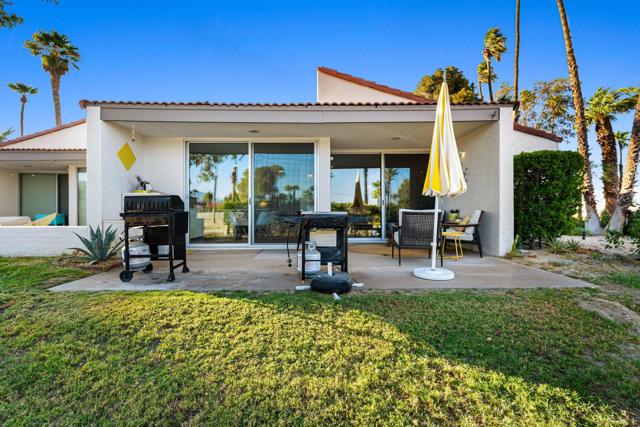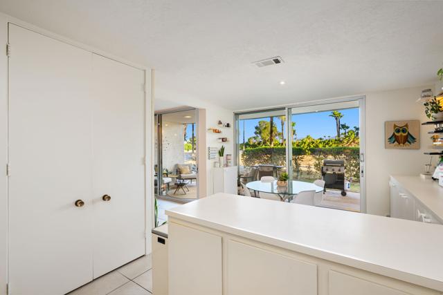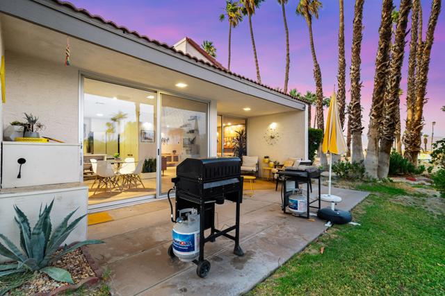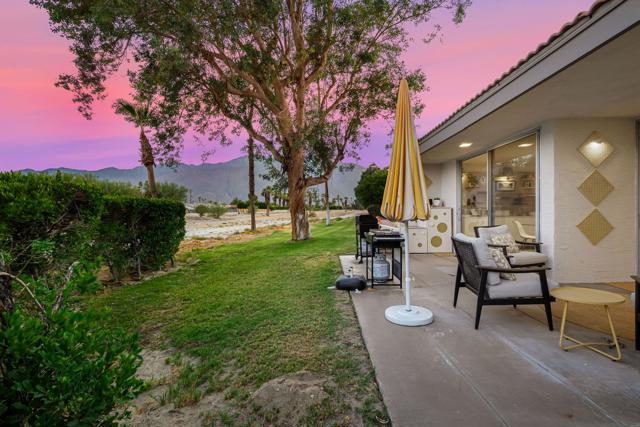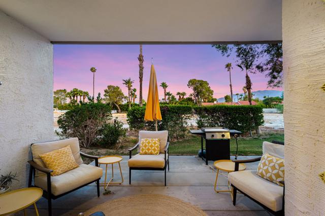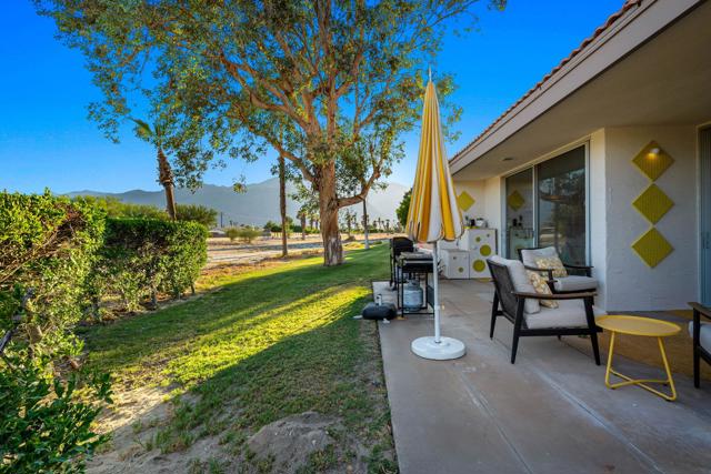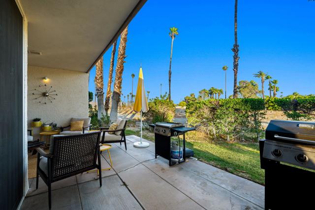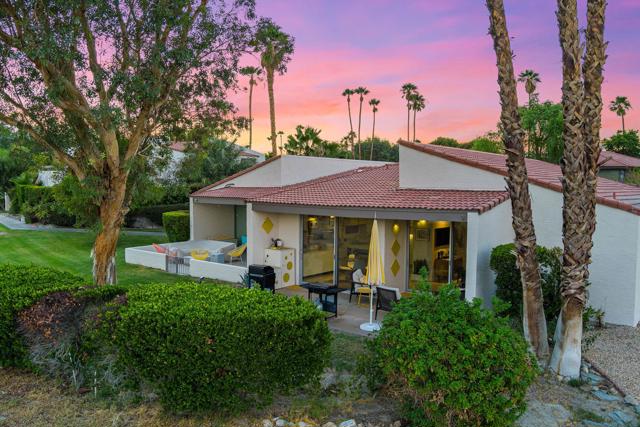 Modern Desert Living by William F. CodyLocated in the gated Palm Springs Country Club, this rare end-unit 3-bedroom, 2-bath home offers 1,420 sq ft of timeless mid-century design by renowned architect William F. Cody. Nestled at the back of the community for maximum privacy, the home showcases Cody's signature elements--floor-to-ceiling glass, soaring doors, and abundant natural light throughout. Enjoy panoramic views of the mountains, adjacent park, and even the CV Link from your expansive double rear patio--perfect for capturing endless desert sunsets.Interior highlights include upgraded wall treatments, designer lighting, and newer appliances, including a sleek Samsung white glass refrigerator. A private front patio adds to the home's indoor-outdoor appeal.Fee-simple land ownership with a low $499/month HOA that covers building and grounds maintenance, pools and spas, water, trash, cable, and internet. Washer and dryer included. Ideal as a full-time residence, weekend retreat, or investment property.