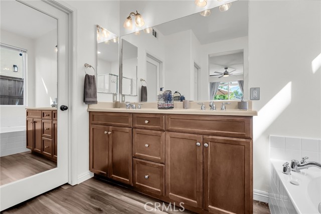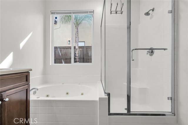 In the heart of Corona’s Sycamore Creek community, this property offers a rare balance of sophistication, comfort, and efficiency. From your first step inside, soaring ceilings and sunlit spaces set the tone. The formal living room provides an elegant introduction, while the open-concept kitchen and family room add a modern touch of comfort. The kitchen is centered around a large island, with stainless steel appliances and a stainless farm style sink. Energy efficiency takes center stage with a fully PAID FOR 18-panel solar system—an investment that not only lowers costs but also supports a sustainable lifestyle. The main level is designed with intention, featuring two bedrooms: a modern primary suite with a spa like bath and jetted tub, and a generous secondary bedroom with its own full bath nearby. Upstairs, versatility reigns with a spacious bedroom, full bath, an open loft, and a flex space perfect for an office, dining, or creative studio, this is a must see to appreciate. Every detail has been thoughtfully touched with a new garage door with epoxy floors, low-maintenance turf, and lush plantings create a home that’s as effortless and relaxing. Outdoors, a private covered patio and soothing fountain transform the backyard into a retreat. Sycamore Creek enhances the experience with resort style amenities: pools, spa, splash pad, clubhouse, fitness center, and BBQ spaces. With award-winning schools and shopping close by.