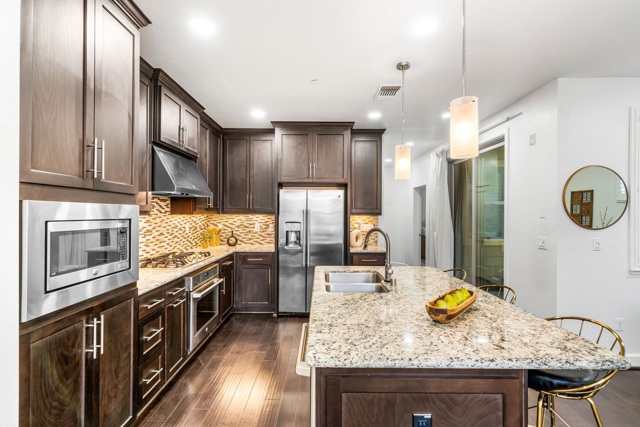 Welcome to this beautifully maintained, north-facing end-unit home in Livermore’s highly sought-after Sage Community. This turnkey residence showcases a two-story floor plan with a full bedroom & bathroom on the main level, perfect for guests or a home office. Open-concept living space filled w/ natural light from expansive windows & features wood flooring, granite countertops, & chef-inspired kitchen complete w/ large island, stainless steel appliances, & gas range. Living/dining areas flow seamlessly to private patio, creating ideal setting for indoor-outdoor living. Upstairs a versatile loft offers flexible use as a workspace, media room, or play area. The primary suite features a spa-like bathroom w/ soaking tub, oversized shower, dual vanities, & a generous walk-in closet. Two additional bedrooms share Jack-and-Jill bathroom, while upstairs laundry room includes a sink & built-in storage. Upgrades include a brand-new Puronics water filtration system, tankless water heater, & split-zone heating & A/C. Residents enjoy resort-style community amenities: stunning clubhouse, fitness center, pool, bocce & basketball courts, BBQ areas, gardens, playgrounds, & scenic walking & fitness trails. Ideally located near top-rated schools, parks, shopping, commuter routes, BART, wineries.