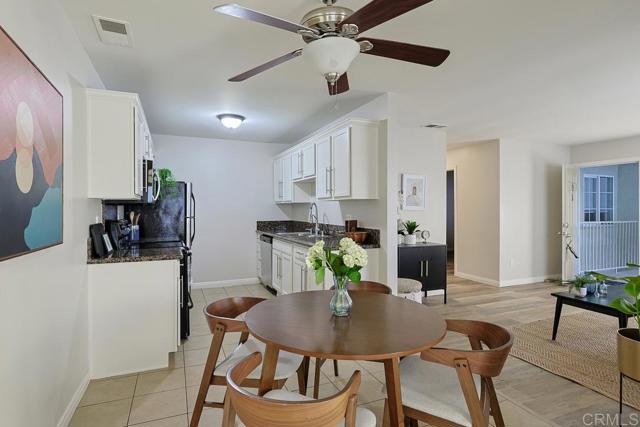 Updated and refreshed 3-bedroom, 2-bath upstairs condo in a centrally located El Cajon community. Recent improvements include new interior paint, updated flooring, modern kitchen hardware, a new dishwasher, and upgraded lighting fixtures, giving the home a clean and contemporary feel. The spacious kitchen offers great functionality and opens to the living and dining areas, creating an easy flow for everyday living. Enjoy abundant natural light throughout the home and step out to the lovely covered patio just off the kitchen, perfect for relaxing or enjoying your morning coffee. All three bedrooms are generously sized, offering flexibility for family, guests, or a home office setup. The gated building provides added privacy and includes one assigned uncovered parking space. Conveniently located within walking distance to shopping, dining, and everyday amenities, this home offers both comfort and accessibility. All measurements are approximate. Buyer and Buyer’s agent to verify all information prior to close of escrow.