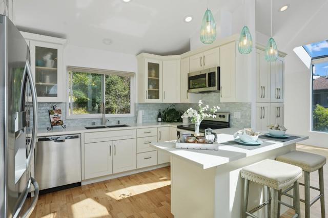 Enjoy breathtaking ocean views from the living room, primary suite, expansive deck, and private balcony. With proximity to sandy beaches, local dining, golf course, Seascape Resort and the vibrant Aptos village. This home offers a lifestyle that blends contemporary elegance with the laid-back charm of Rio Del Mar. With its prime location, elegant upgrades, and captivating surroundings, this home is ideal as a full-time residence or vacation getaway. Beautifully renovated three-bedroom, 2.5-bath home offering approximately 2,100 sq. ft. of living space. Inside, you'll find an open-concept floor plan ideal for both relaxation and entertaining. The kitchen features premium appliances, and a generous island that flows into the dining and living areas, all oriented toward the ocean horizon. Spacious bedrooms, including a serene primary suite with a spa-like bath, provide comfort and privacy. Every detail has been thoughtfully curated for convenience and luxury. Media ready living spaces, a cozy fireplace and ample storage. Outdoor multiple patios and decks offer a perfect backdrop for morning coffee, sunset gatherings, or simply listening to the sound of the waves.
