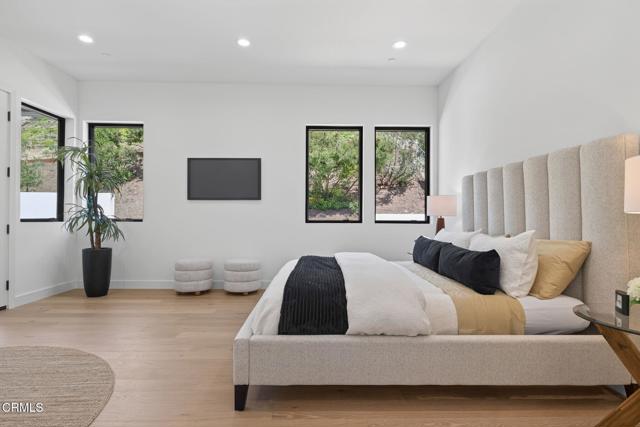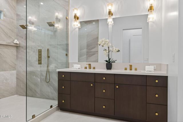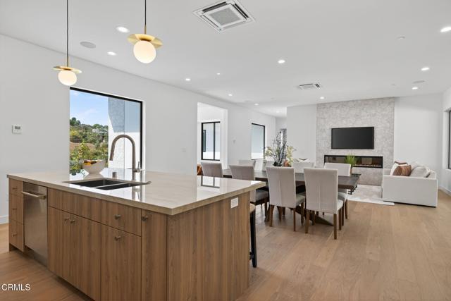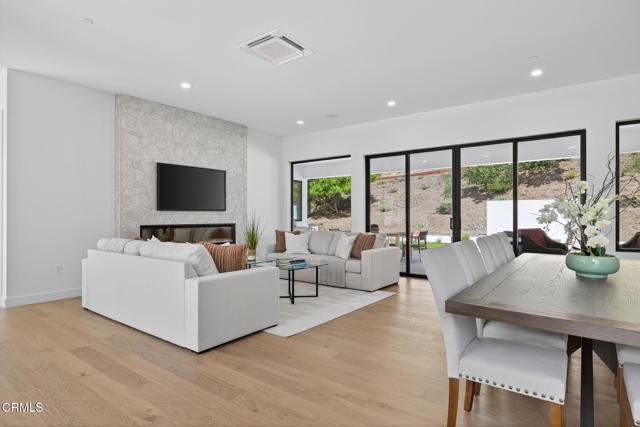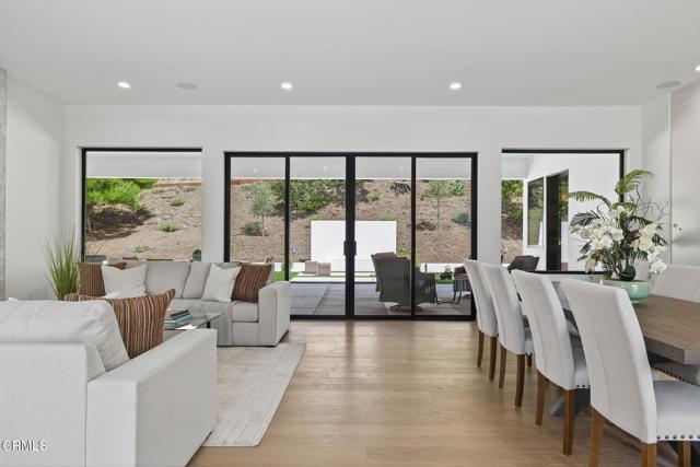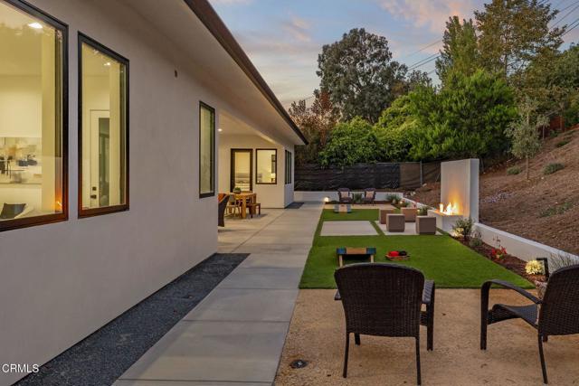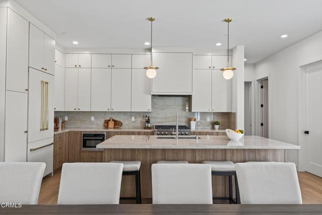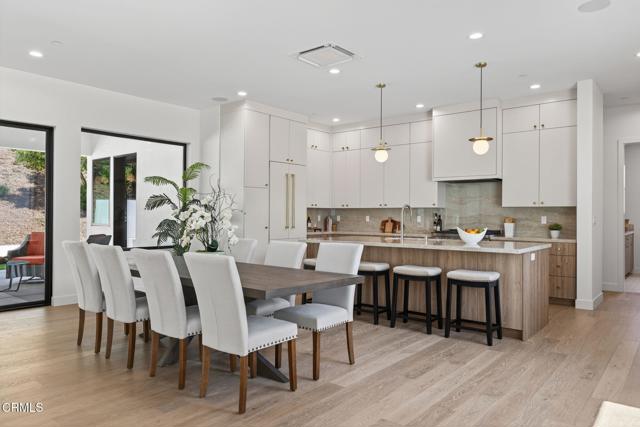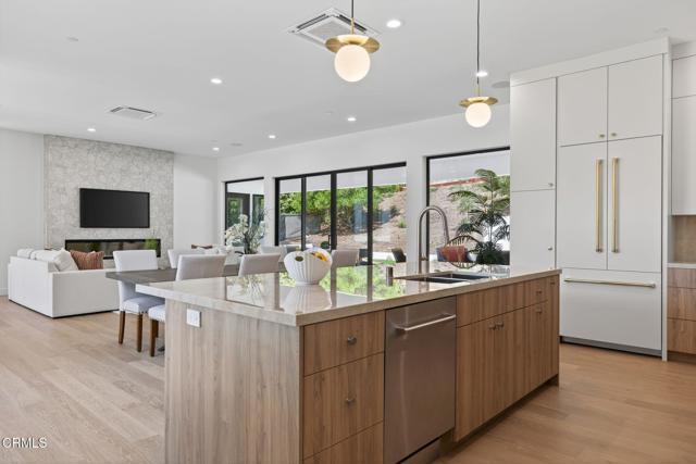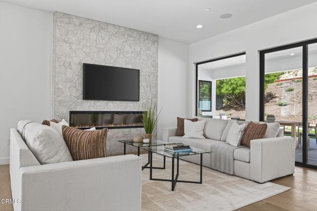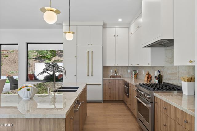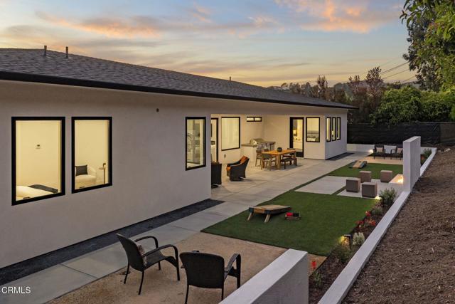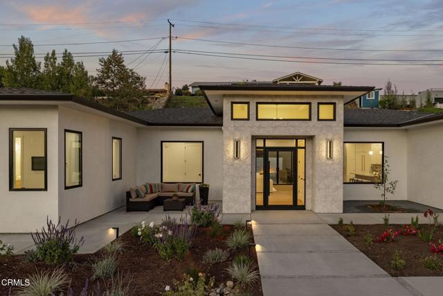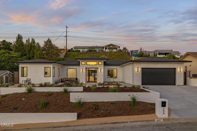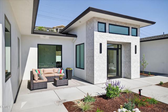 Welcome to Ondulando! A rare opportunity to own a brand-new construction home in one of Ventura's most sought-after neighborhoods. This modern single story residence is crafted with unparalleled attention to detail, thoughtful design, and high-end finishes. Inside you are greeted with an open concept floor plan perfect for entertaining and featuring elegant white oak engineered hardwood floors throughout. The chef's kitchen showcases top of the line appliances, a striking 9-foot center island, and a seamless flow into the spacious living room with 74' WiFi-enabled color changing LED fireplace adding to the inviting ambience of the home. This 4-bedroom, 4-bathroom masterpiece redefines luxury living with its split wing layout featuring two primary suites with incredible bathrooms with modern finishes, and each with private access to the covered patio. The extra spacious laundry room with ample cabinet space provides additional storage along with the two entry closets and hallway linen closet. Every detail was designed with efficiency and comfort in mind: individually zoned mini-split heating and cooling, a fully integrated solar system pre-wired for backup battery, EV charging readiness, and Halo 5 whole house water filtration system. Smart home upgrades include Ring doorbell, Sonos sound system with iPad control, and more! Spacious two car garage complete with epoxy finish. Step outside to your own private outdoor retreat featuring multiple sitting and dining areas, a fully equipped outdoor kitchen, fire pit, and tranquil fountain--the perfect setting for gathering year-round. From smart design to outdoor entertaining, this home delivers everything you've been waiting for! Come experience the perfect blend of luxury, innovation, and California living in this one-of-a-kind Ventura home.